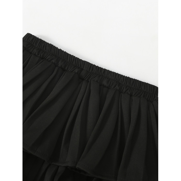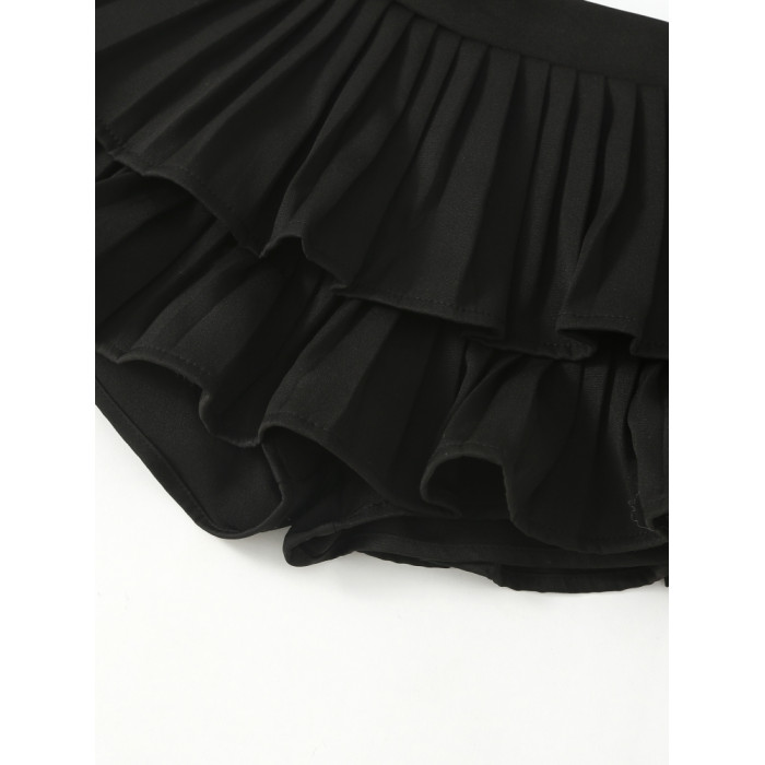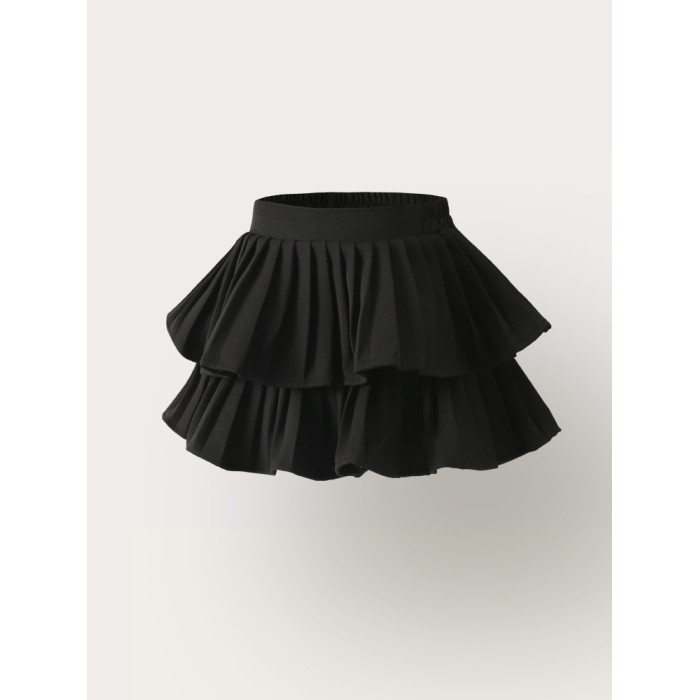 女童ins網紅蓬蓬裙韓版防走光超短裙夏季a字裙黑色半身裙蛋糕裙潮