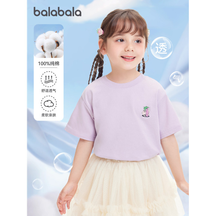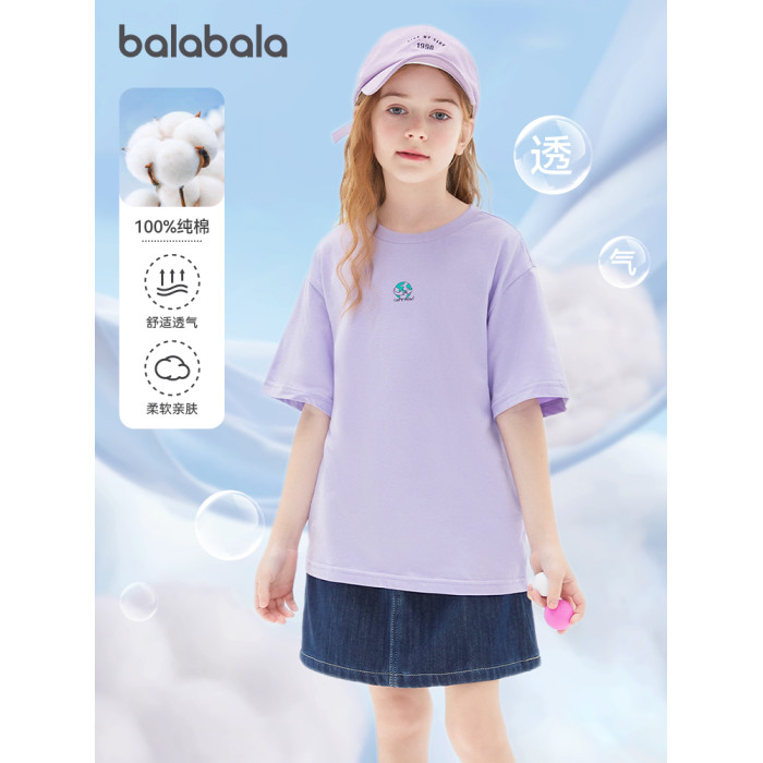 巴拉巴拉女童短袖t恤大童純棉半袖T恤兒童寬松上衣夏季新款童裝潮