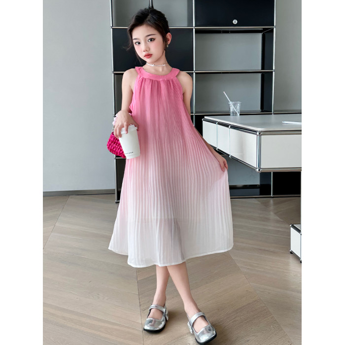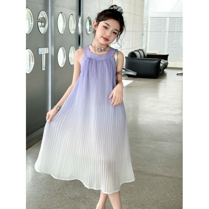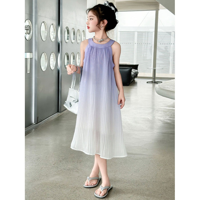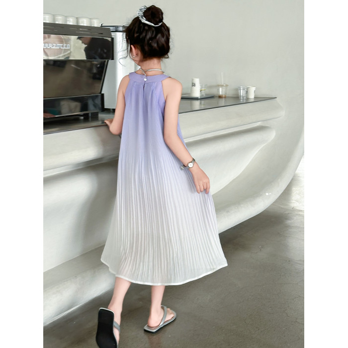 女童連衣裙夏裝2025新款洋氣兒童漸變無袖公主長裙掛脖雪紡沙灘裙