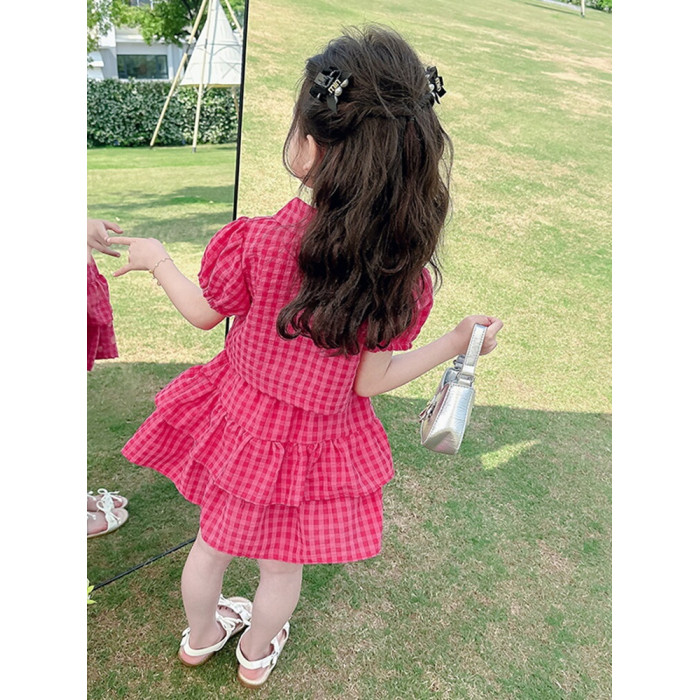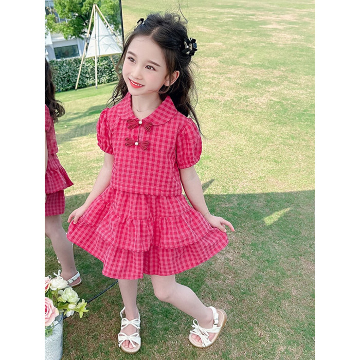 女童夏季套裝裙子2025新款兒童洋氣時髦女寶寶紅色時尚連衣裙夏裝