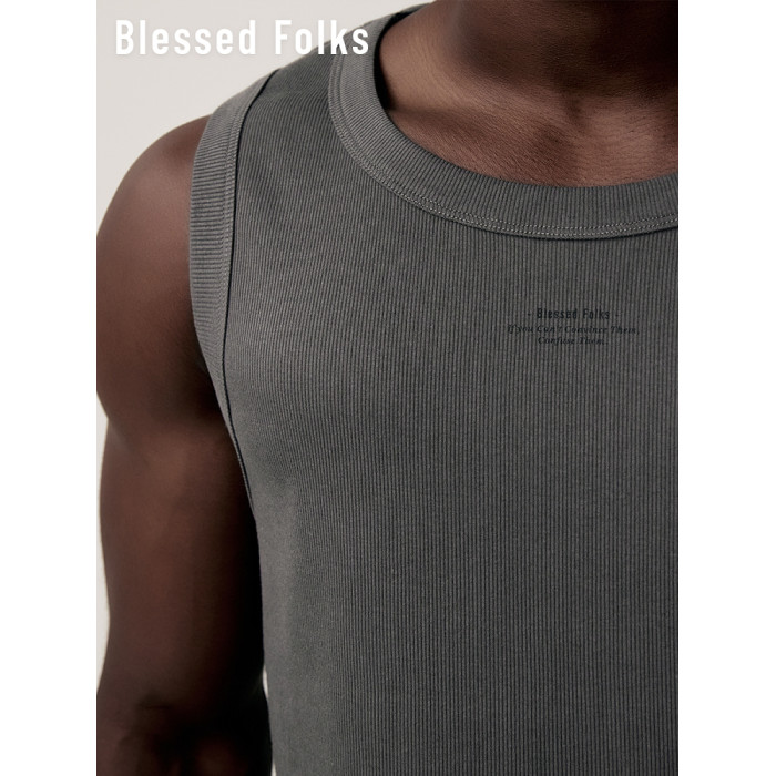 Blessed Folks25夏季美式復古高街運動輕薄打底彈力羅紋男背心