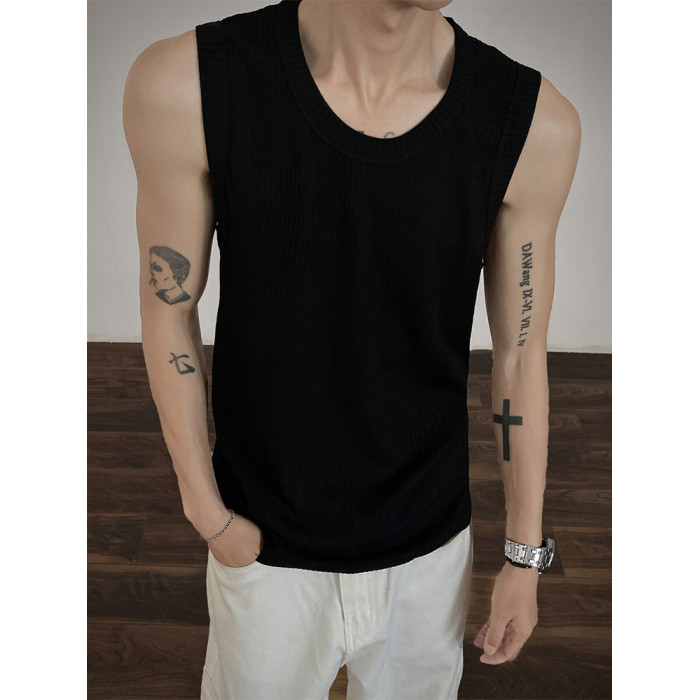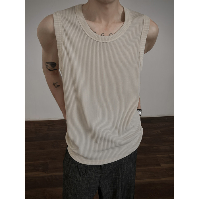 cleanfit老錢風肌理感冰絲背心男款夏季薄款健身運動無袖t恤汗衫