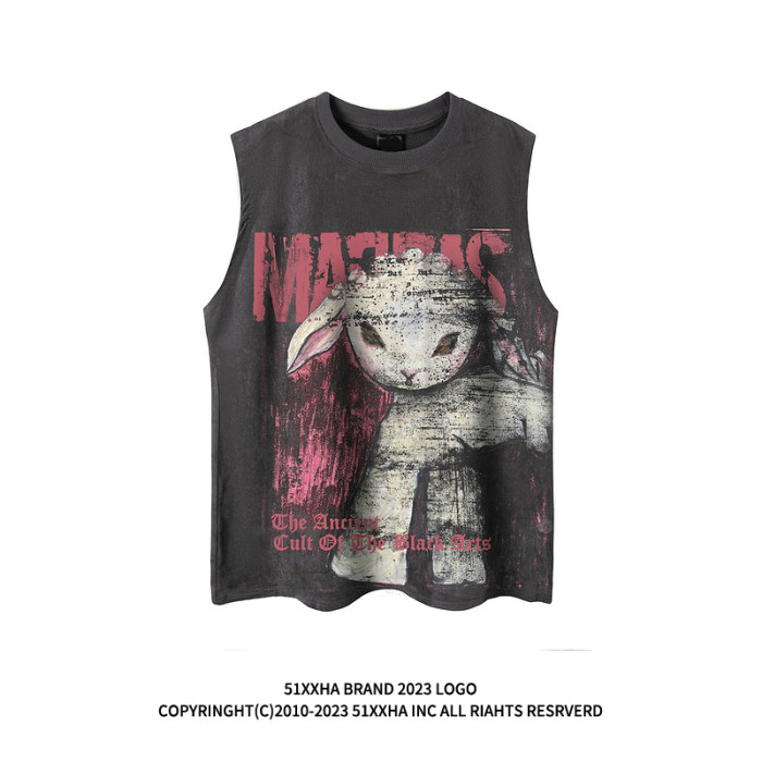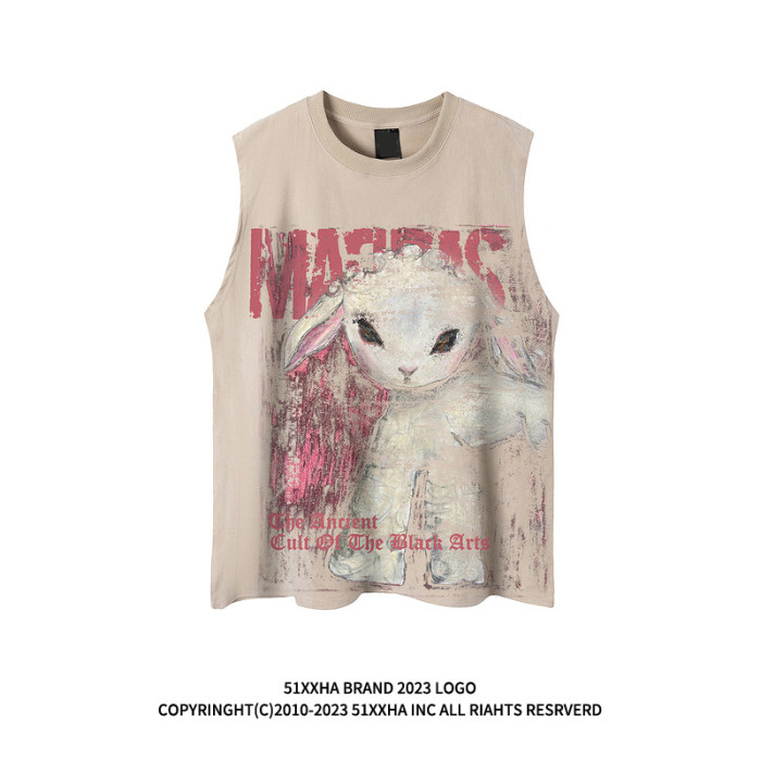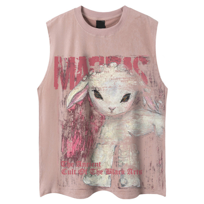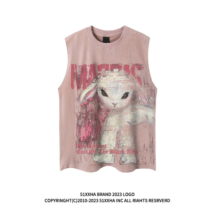 51嘻哈趣味多巴胺兔子印花麂皮絨無袖T恤男女潮牌寬松運動汗背心