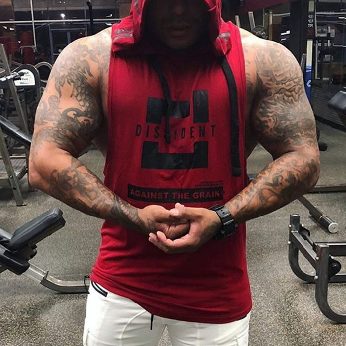 連帽無袖男t恤純棉夏季薄器械健身訓練帽衫修身男士運動背心汗衫