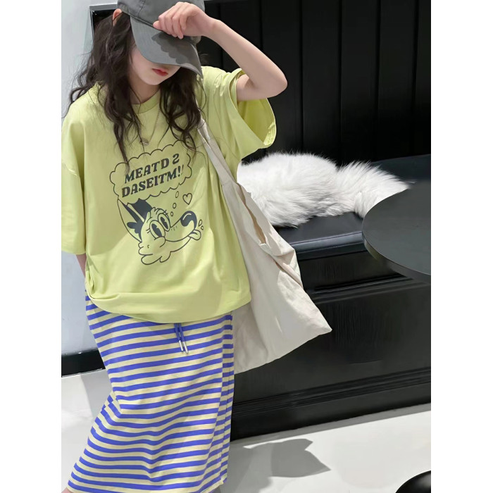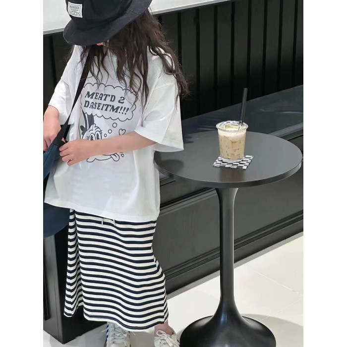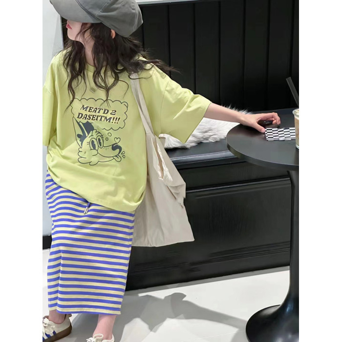 波拉韓童裝女童短袖2025夏裝兒童寬松t恤卡通圓領上衣中大童T