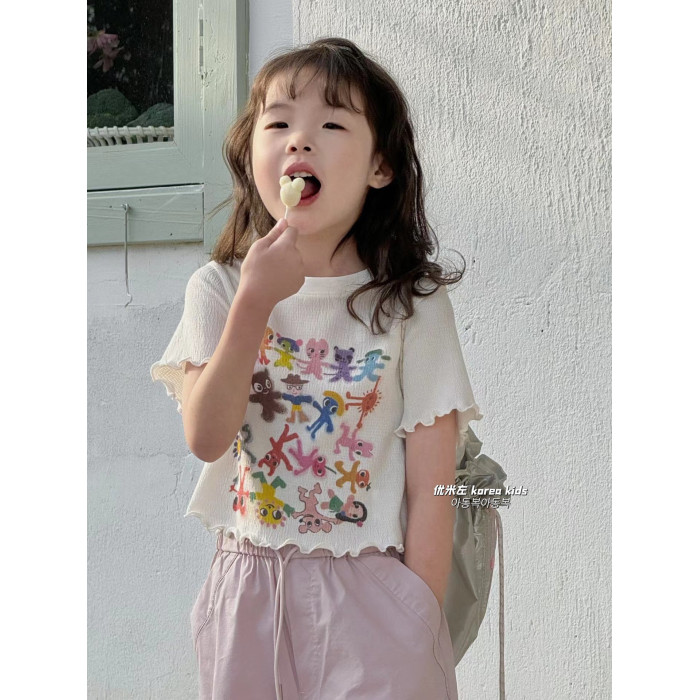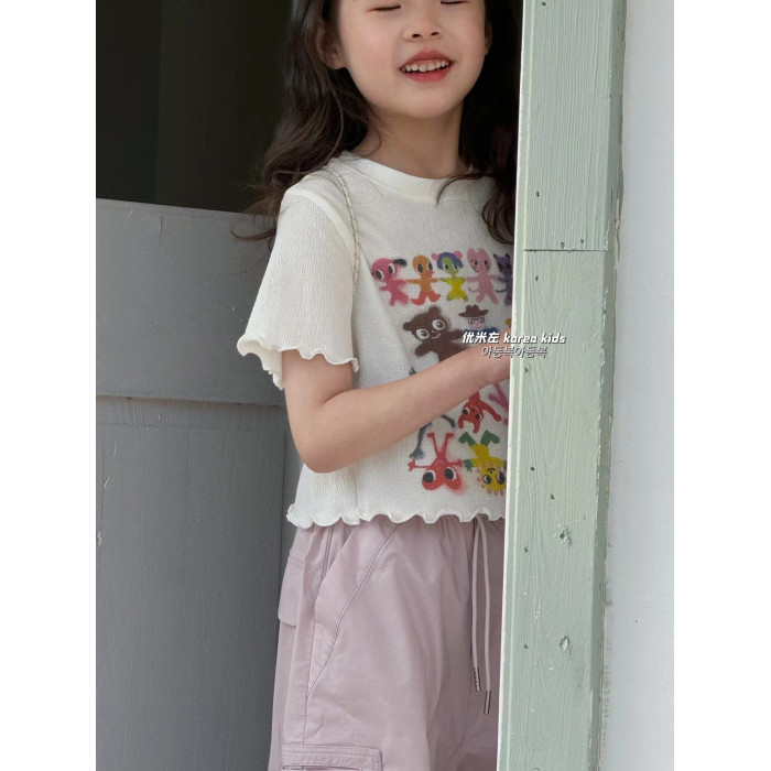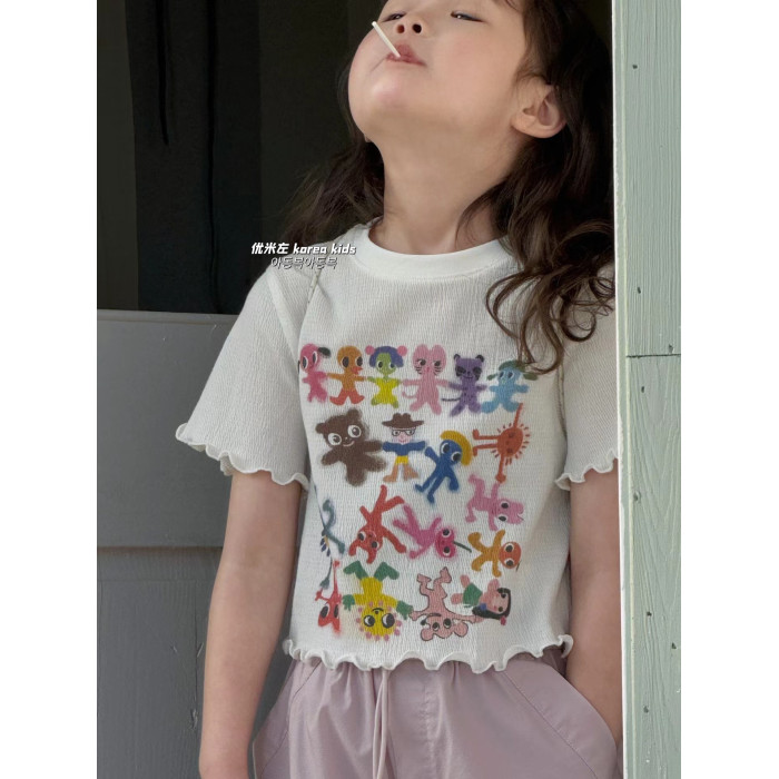 韓國童裝2025春夏新款女童卡通純棉短袖T恤兒童洋氣百搭短款上衣