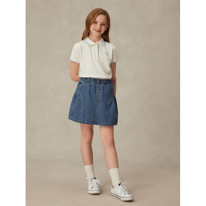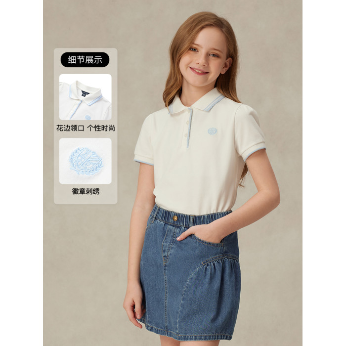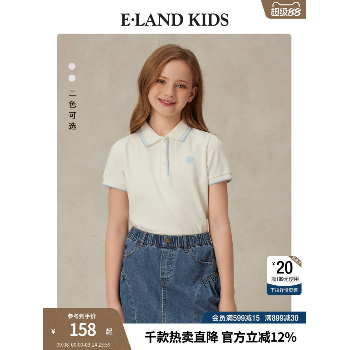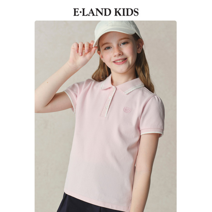 eland kids衣戀童裝女童POLO衫2025年夏季新品徽章撞色花邊領T恤