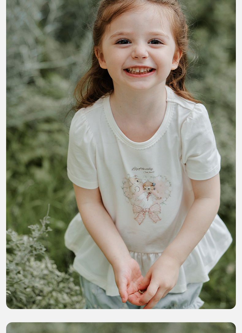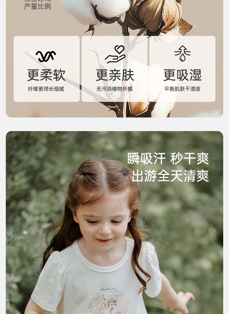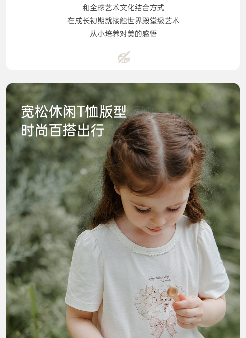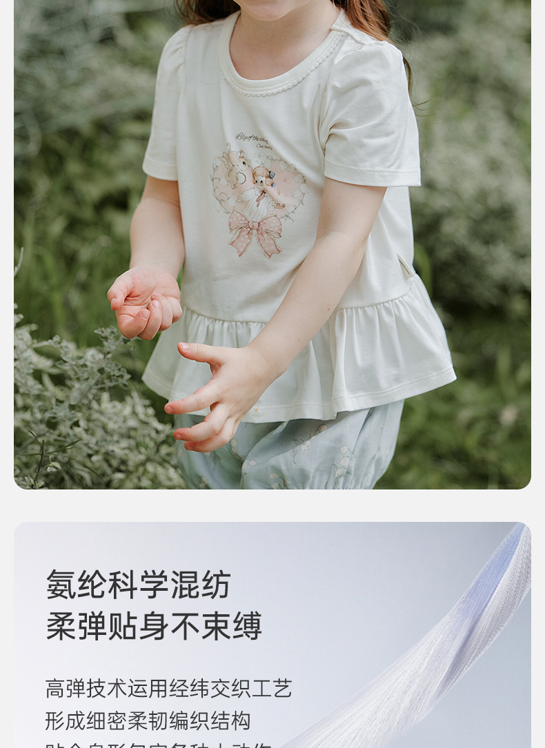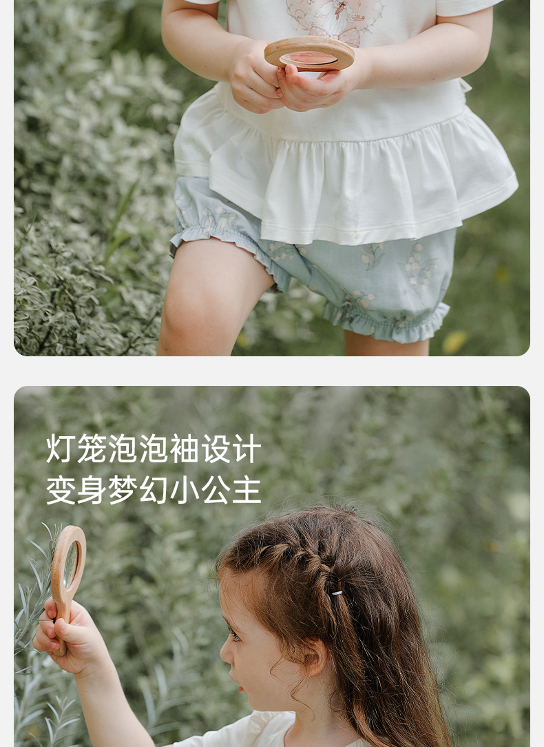 Oak Family夏季女童T恤絲柔棉圓領短袖打底衫百搭花邊彈力上衣