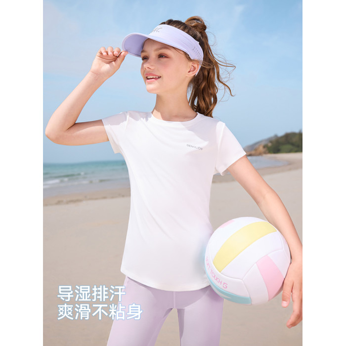 Kiya女童短袖T恤夏季2025新款兒童舒適輕薄純色百搭休閒速乾上衣