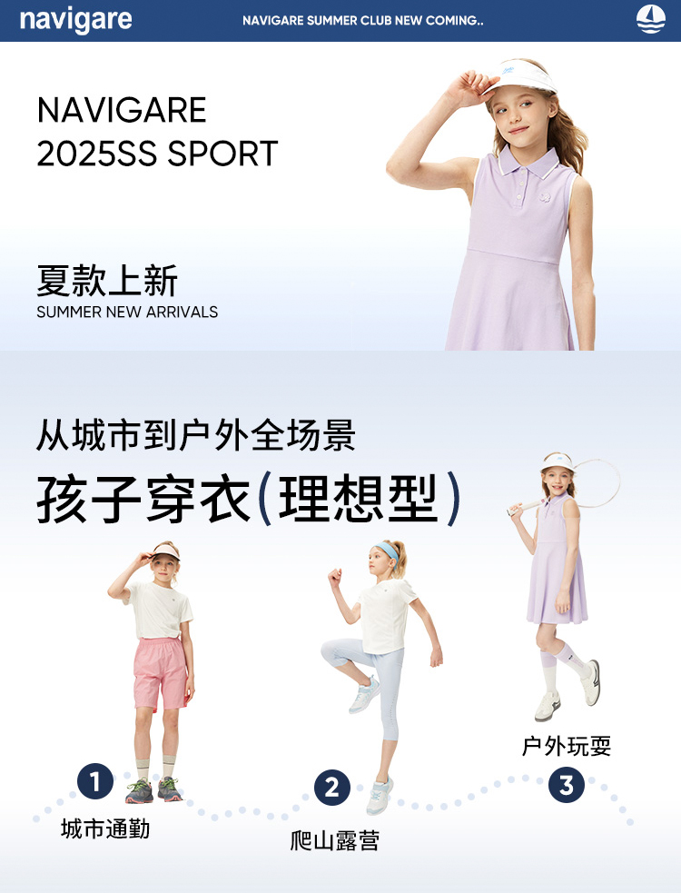 Navigare意大利小帆船女童半身裙2025年夏季洋氣兒童運動裙子