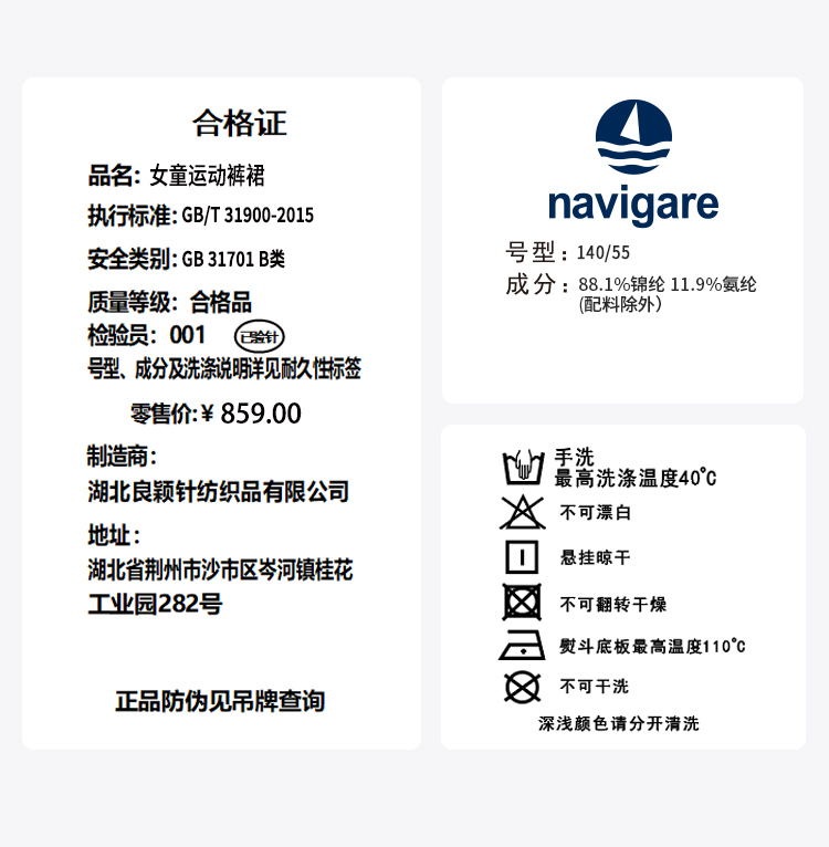 聚醯胺纖維(錦綸)88.1% 聚氨酯彈性纖維(氨綸)11.9%