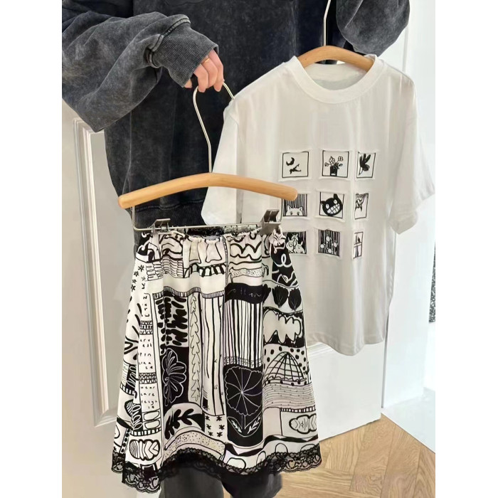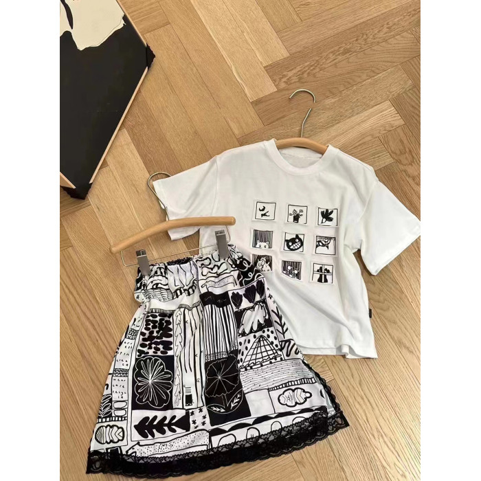 波拉韓童裝女童短袖2025夏裝兒童T恤中大童洋氣小女孩長裙套裝