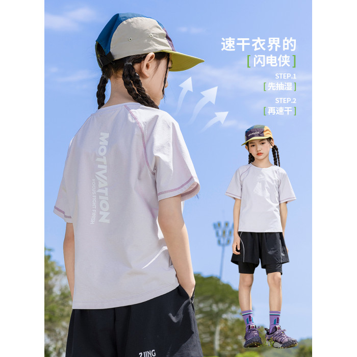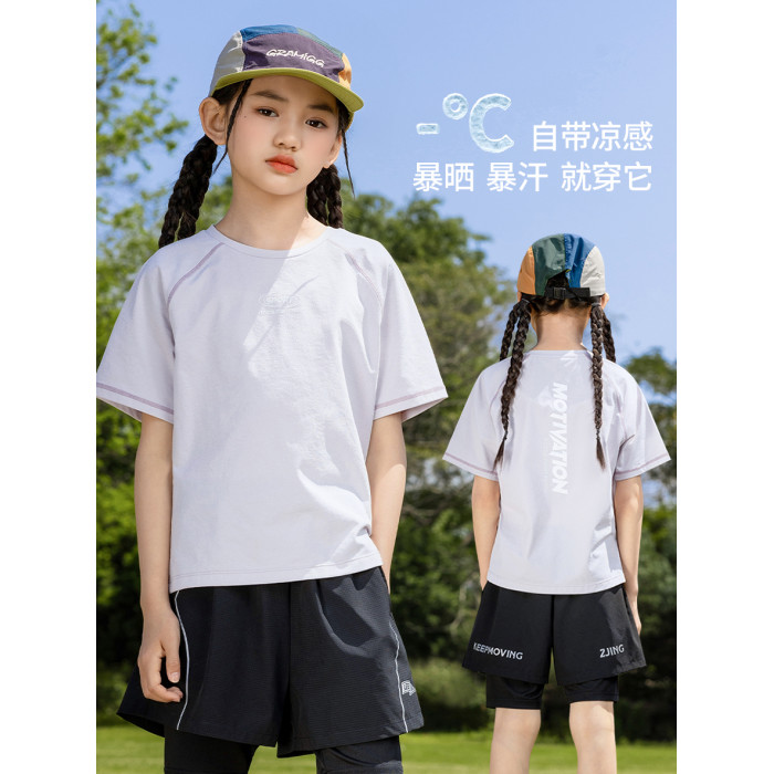 女童速乾衣夏季2025新款兒童運動短袖T恤訓練服套裝女大童夏上衣