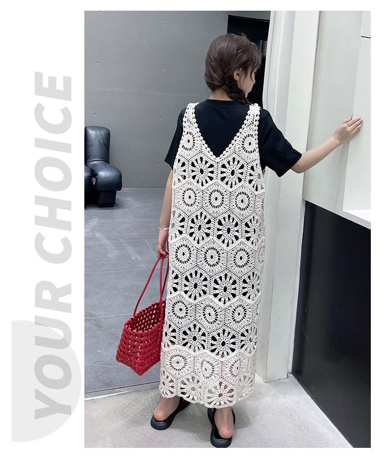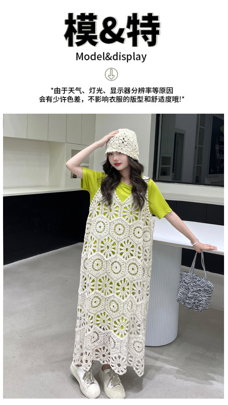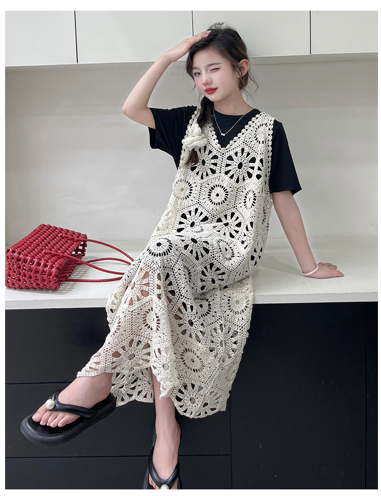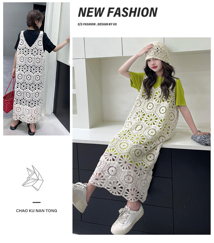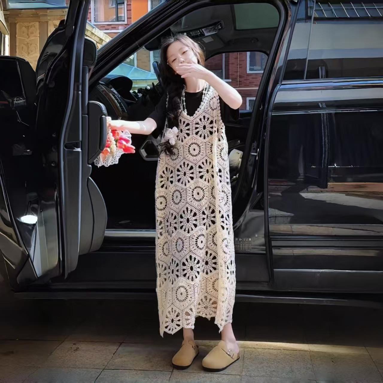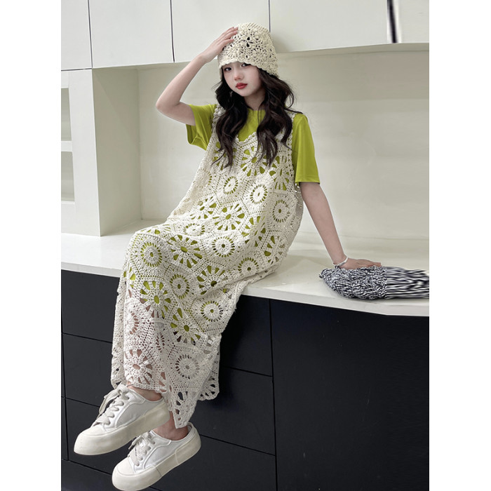 今年流行鏤空曡穿連衣裙女童夏季薄款學院度假出遊高級感針織長裙