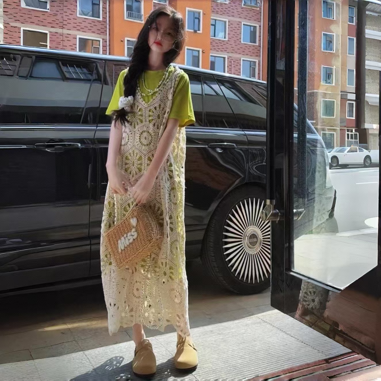 米色鏤空裙+綠色針織長裙 尺碼偏大半碼 不用拍大