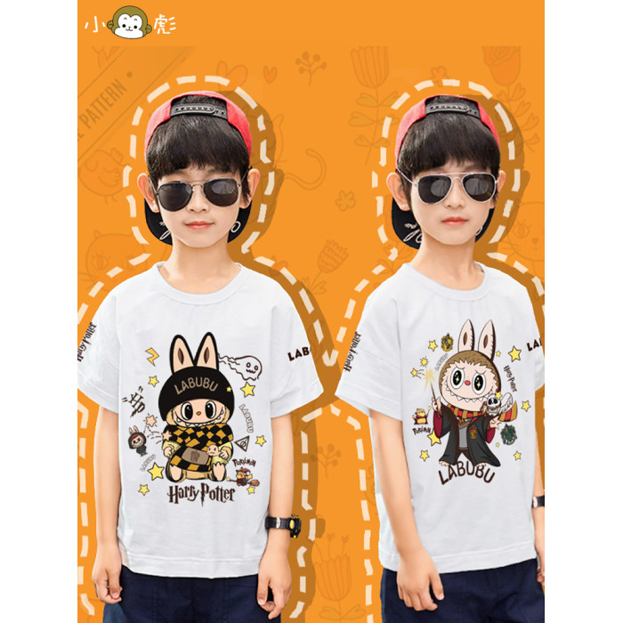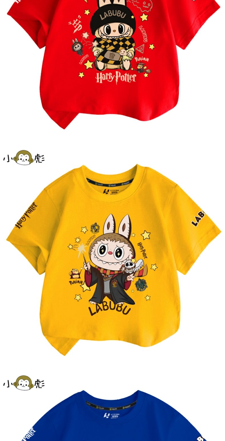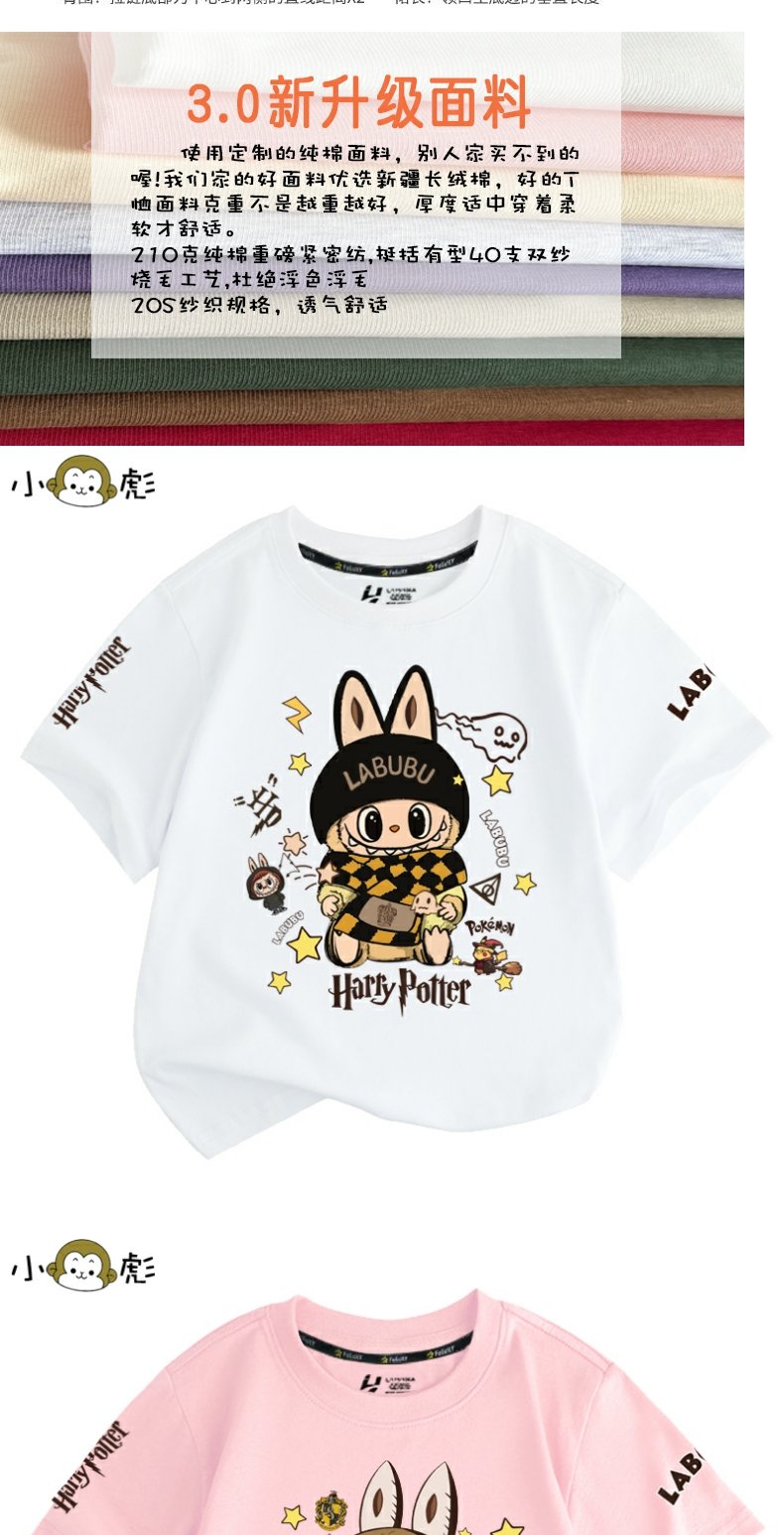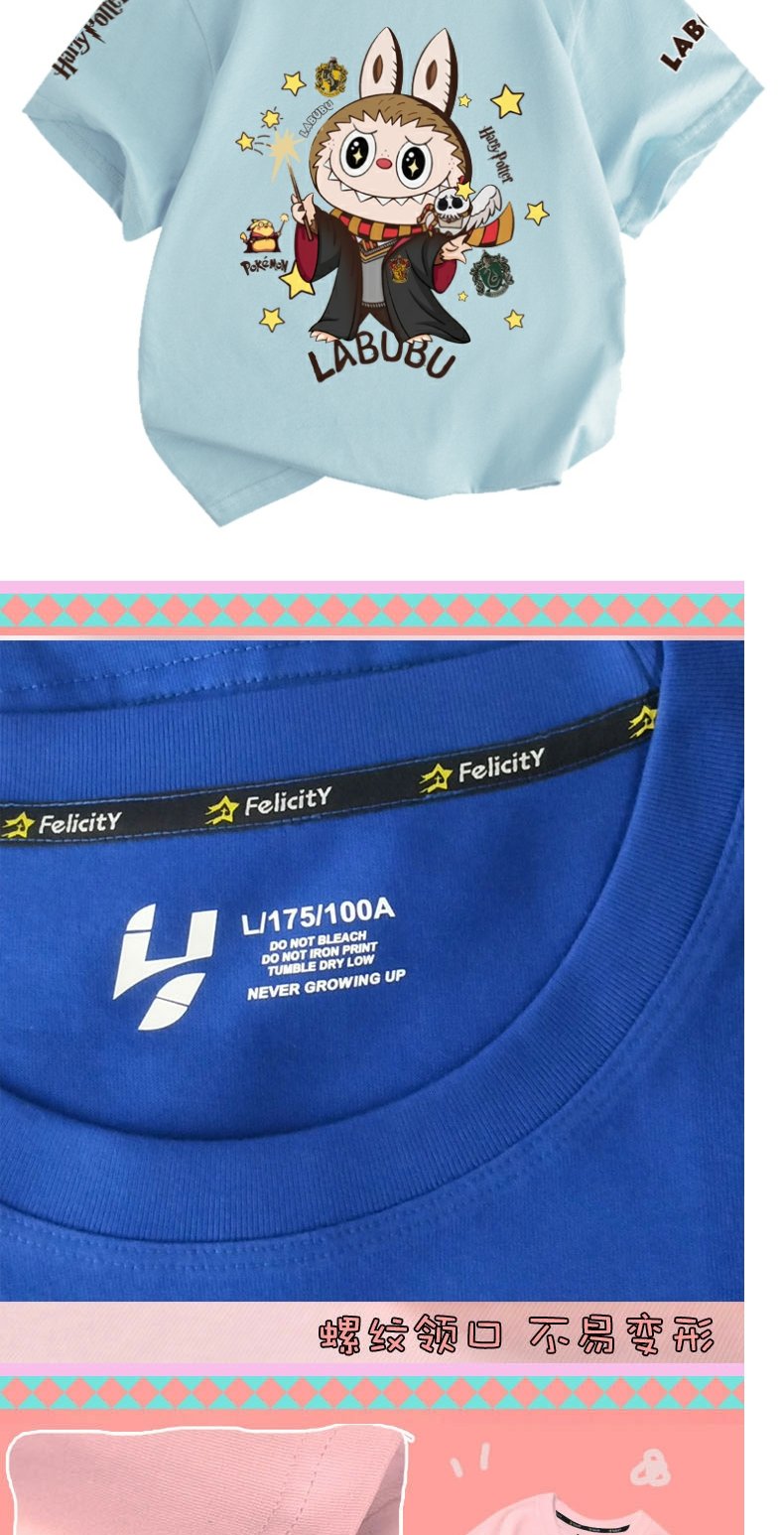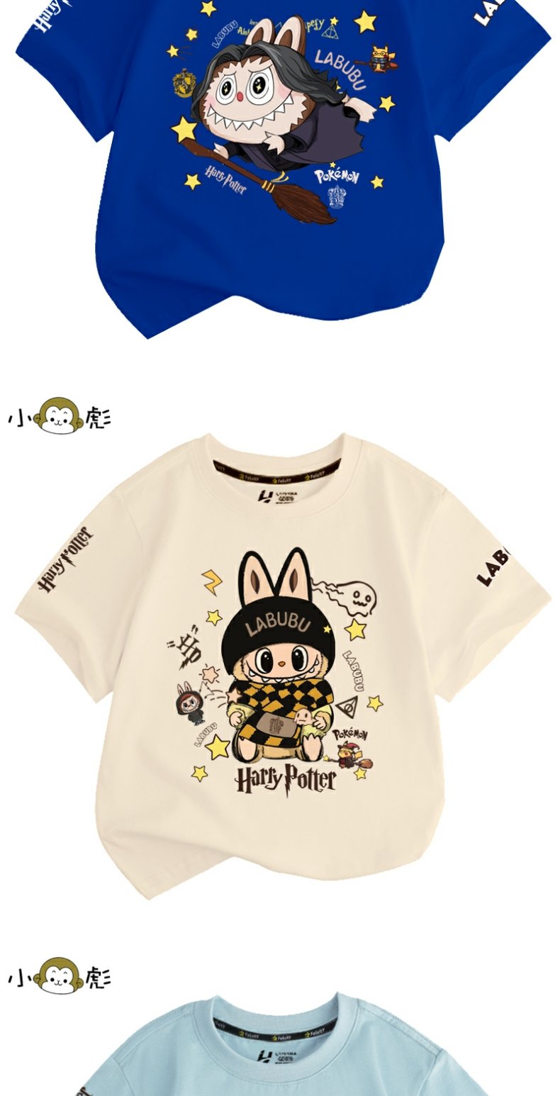 拉布布聯名哈利波特皮卡丘寶可夢短袖t恤衫男女兒童裝學生半袖