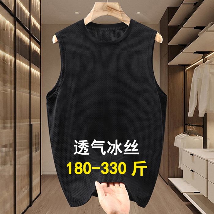 300斤大碼冰絲背心男夏季新款胖子寬松透氣加肥加大潮流無袖T恤