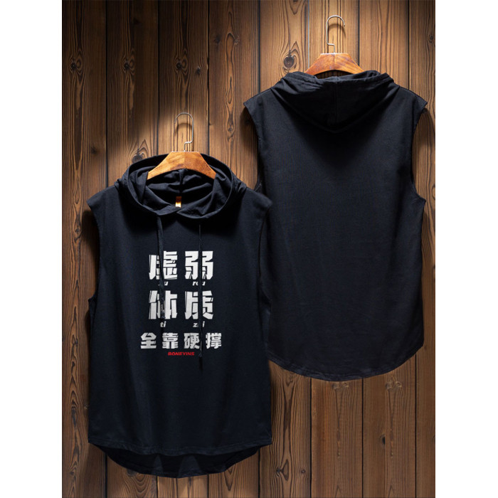 純棉虛弱體質美式運動訓練連帽健身外穿汗衫肌肉背心男士無袖坎肩