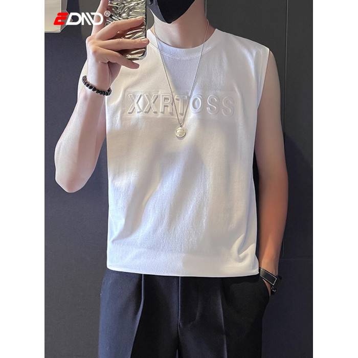 潮牌冰絲背心男士2025新款夏季薄款速乾運動坎肩白色無袖T恤男款