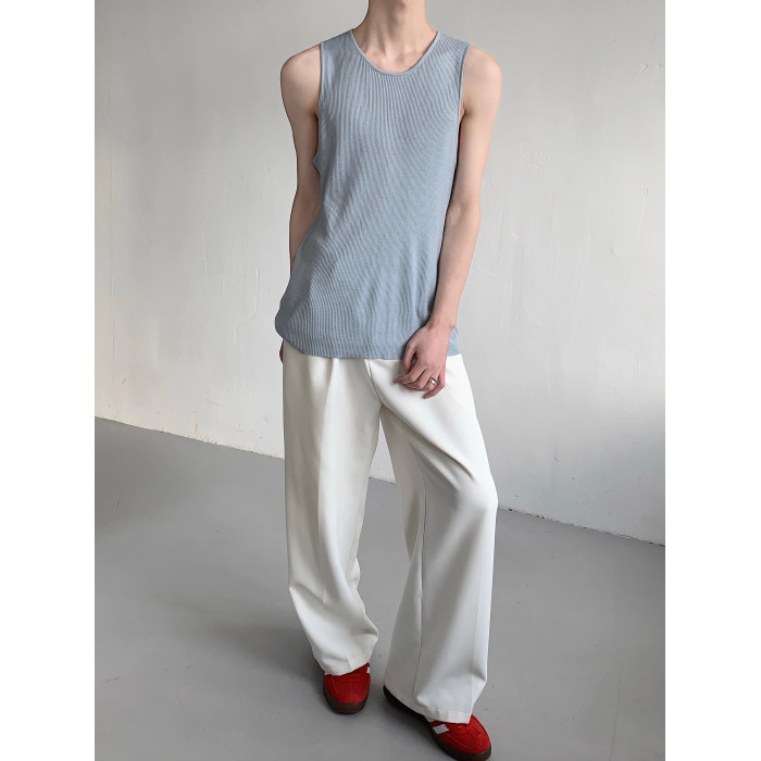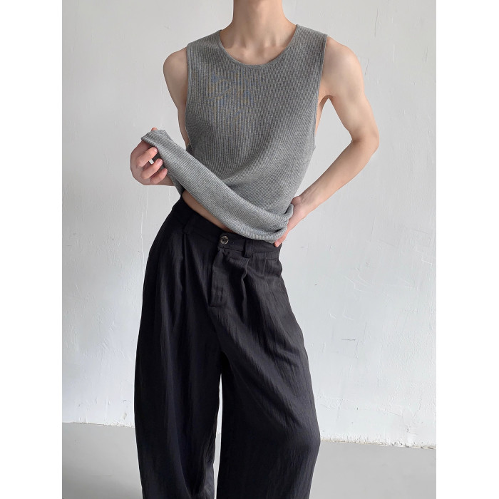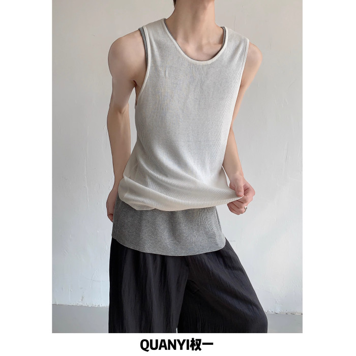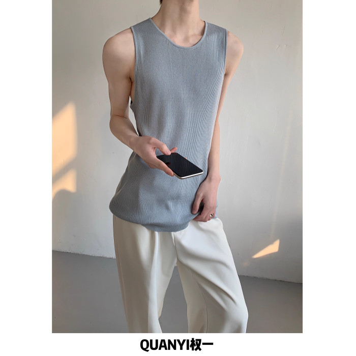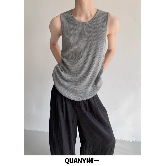 權一 舒服好穿 夏季純色松弛感針織無袖背心慵懶坎肩馬甲T恤男女