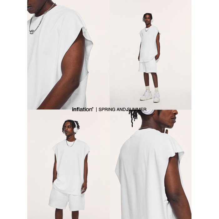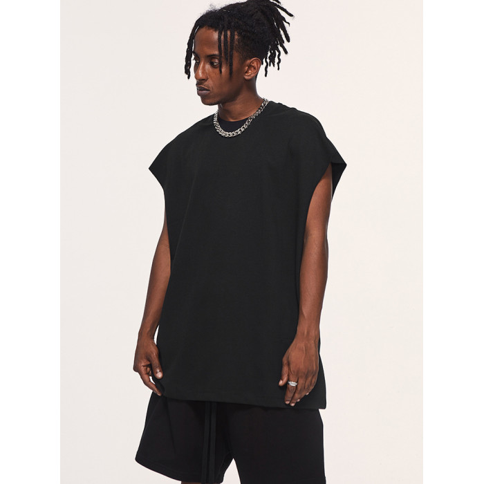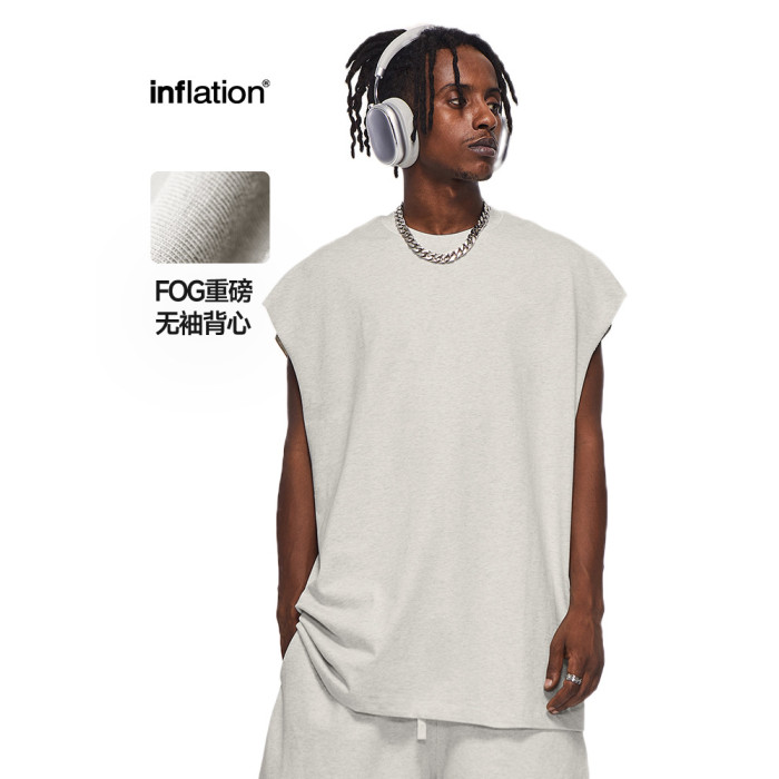 全棉重磅無袖背心T恤純色2025春夏新品大地色FOG街頭ins潮牌男