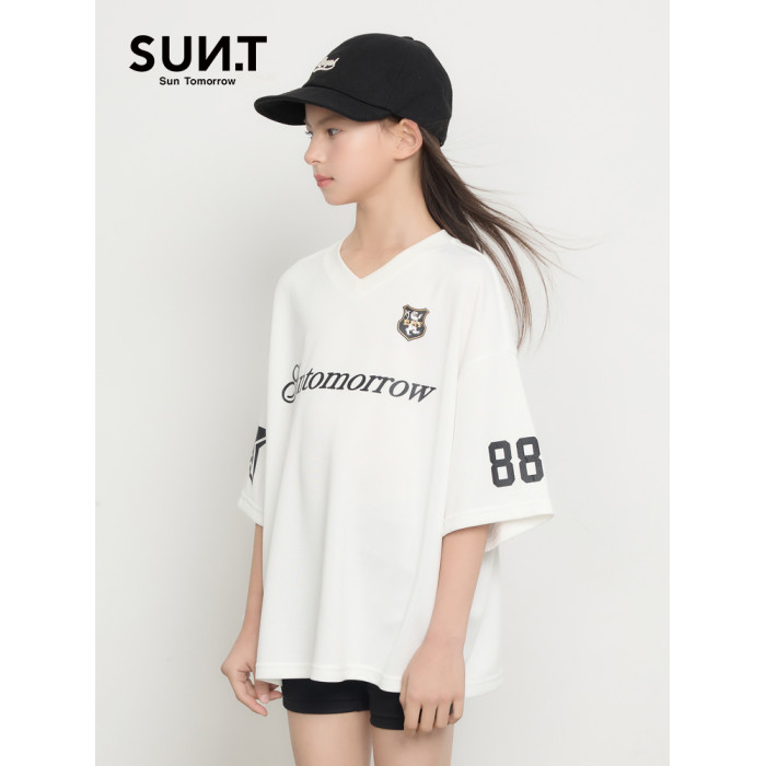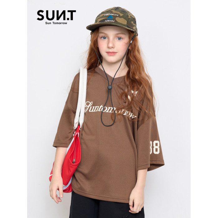 suntomorrow童裝美式復古潮流印花短袖T恤女童夏季中大童寬松上衣