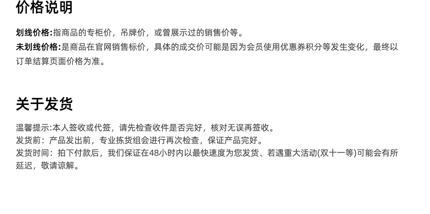 款式及尺寸: