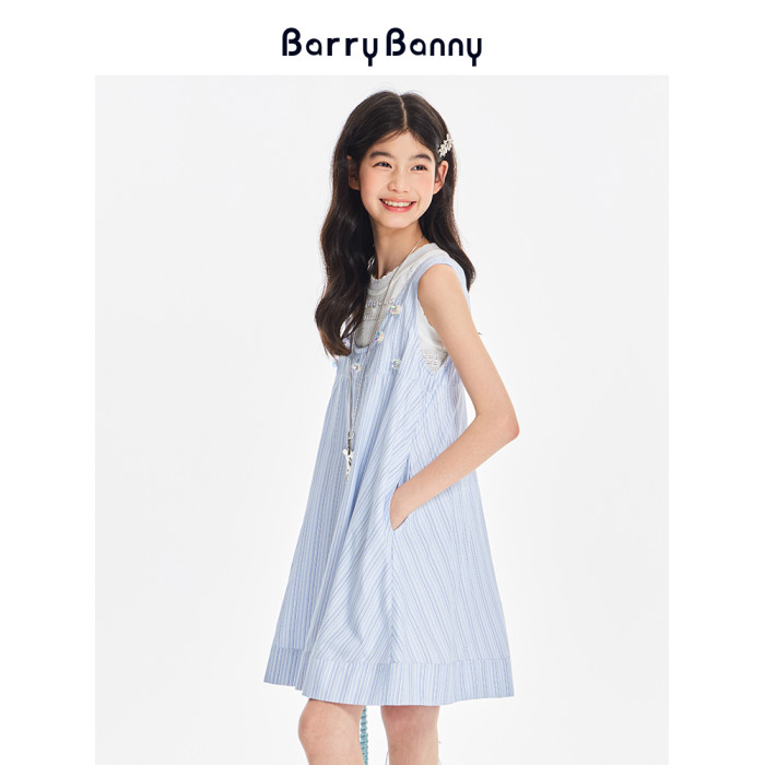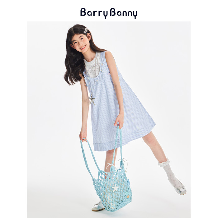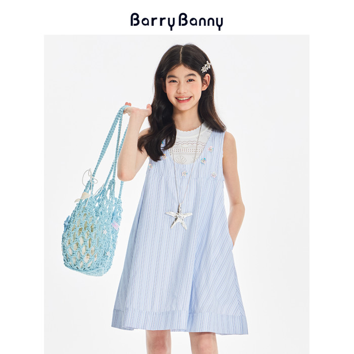 BarryBanny女童立體花背心裙2025夏季新款兒童女孩裙子無袖連衣裙