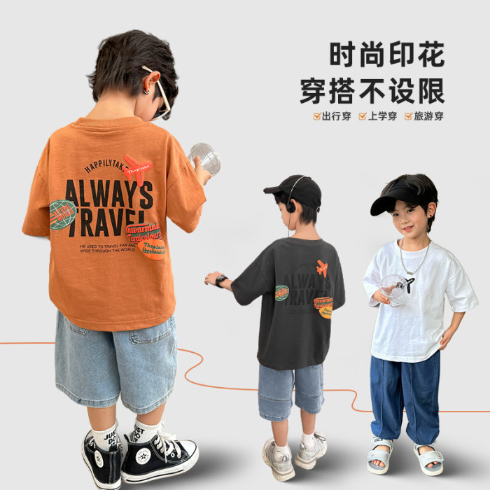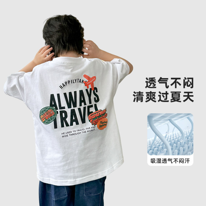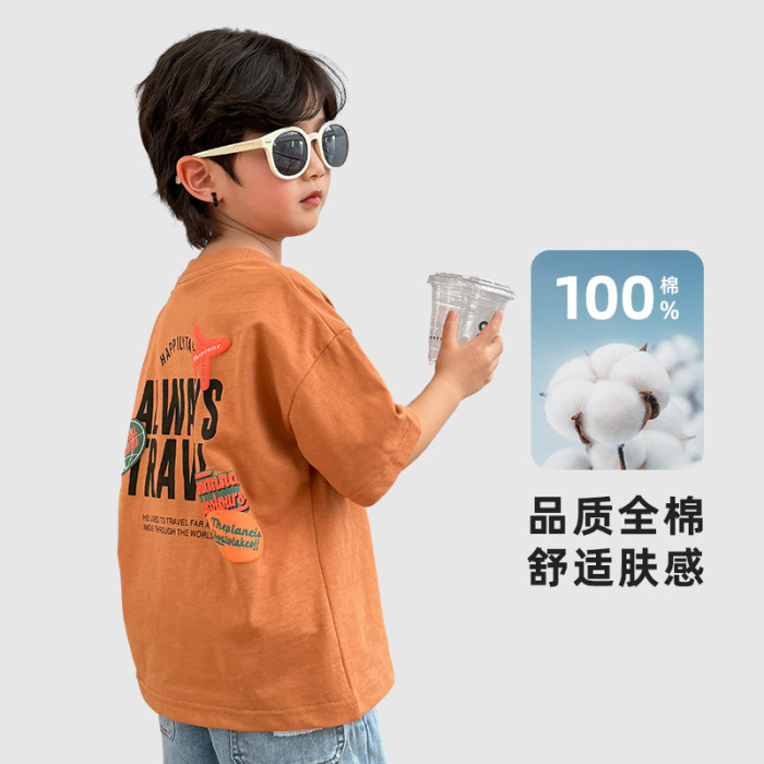 海媽家男童短袖T恤大童2025新款男孩夏裝純棉上衣兒童半袖童裝潮t