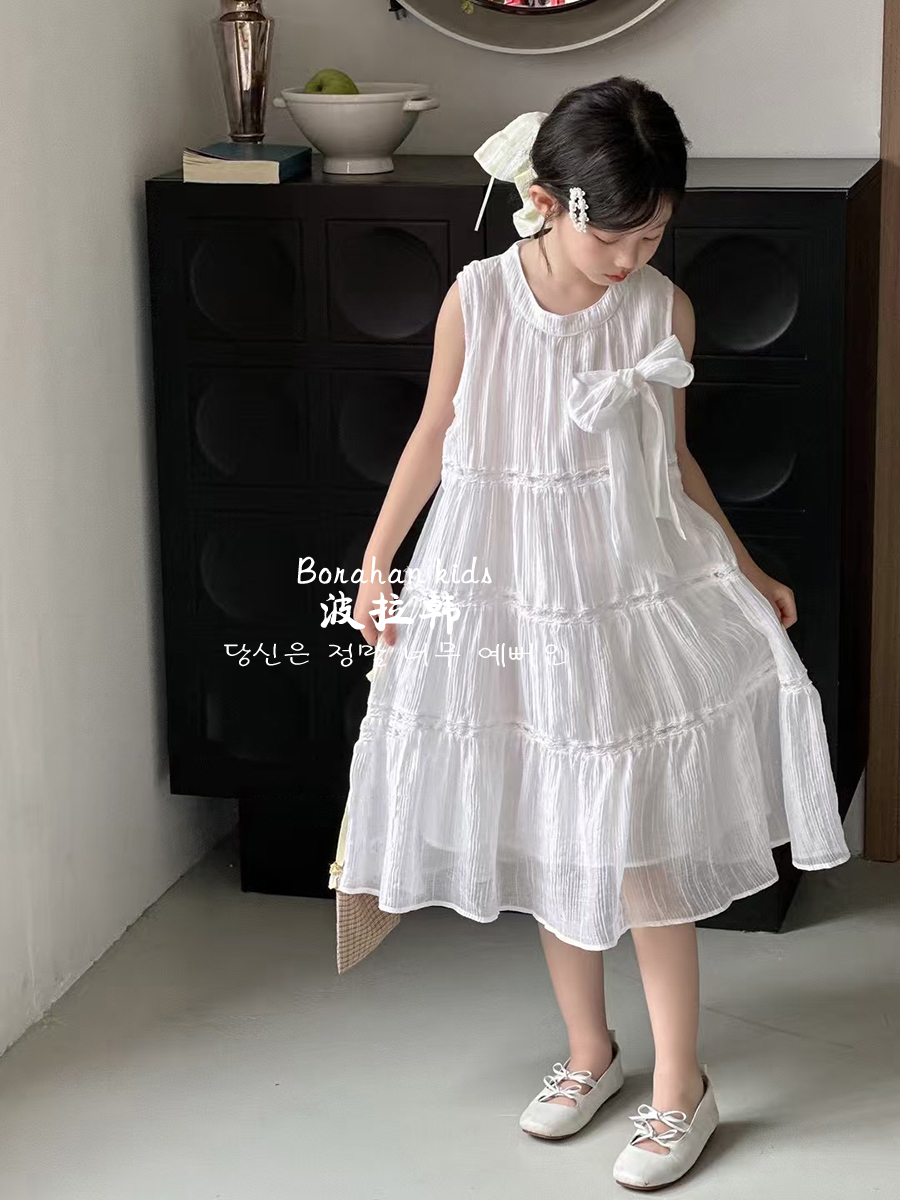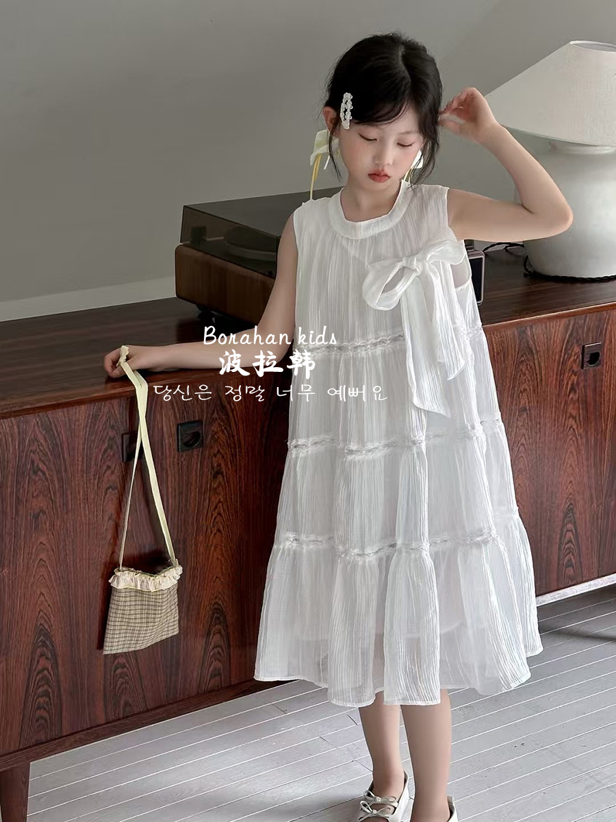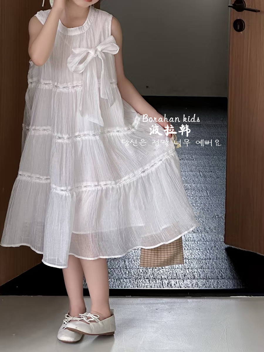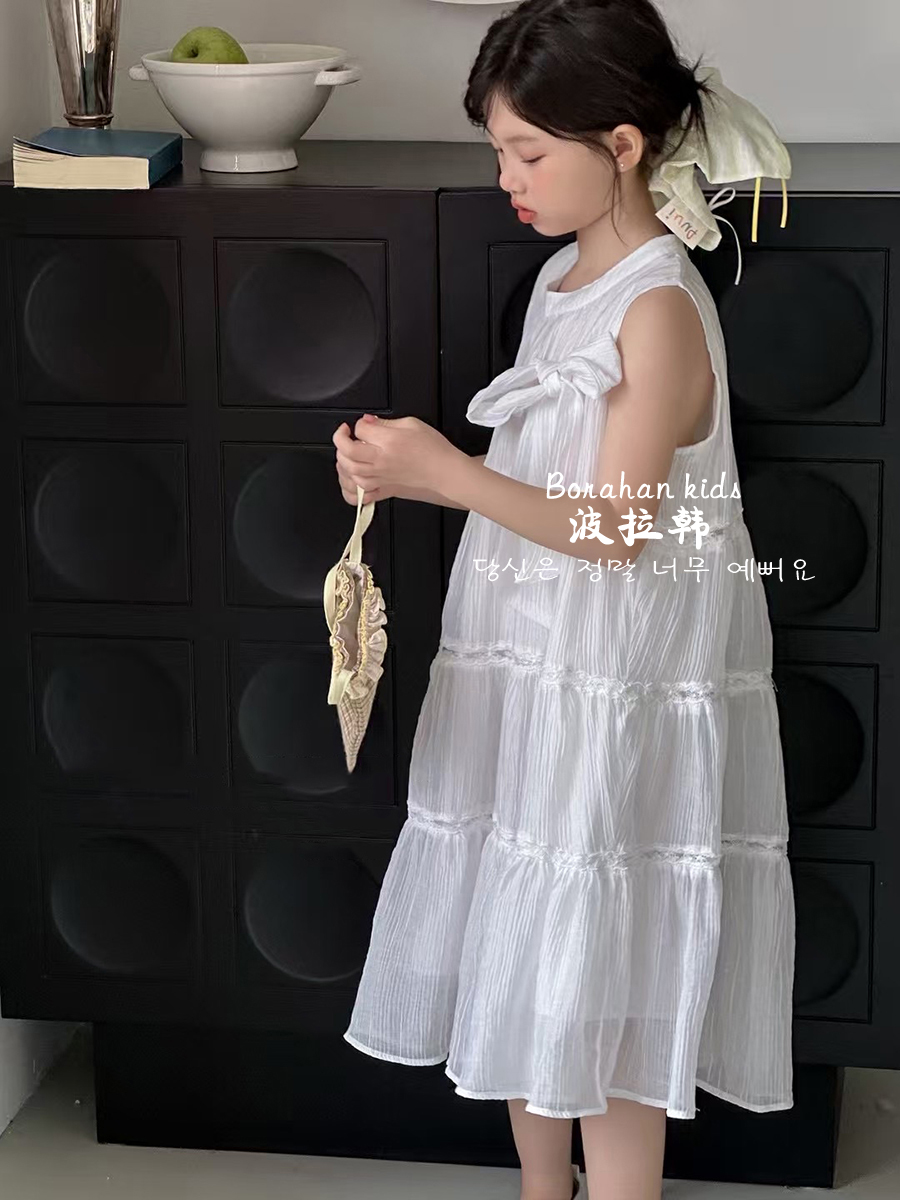 波拉韓女童連衣裙2025夏季背心裙兒童蝴蝶結公主裙小女孩甜美裙子