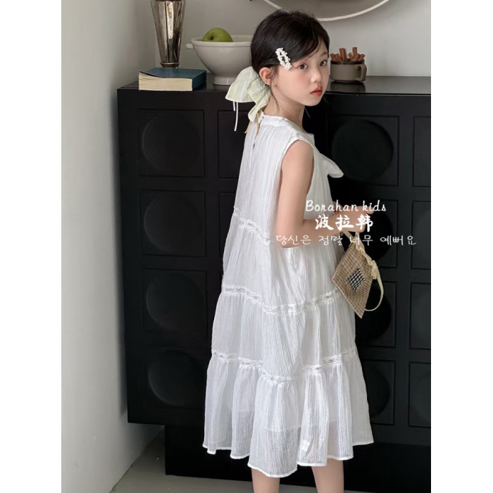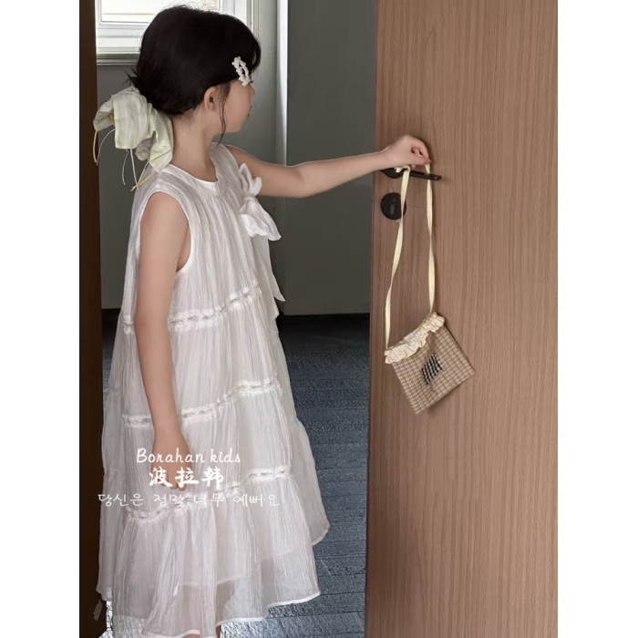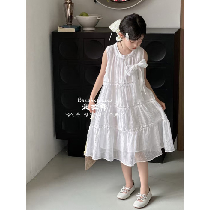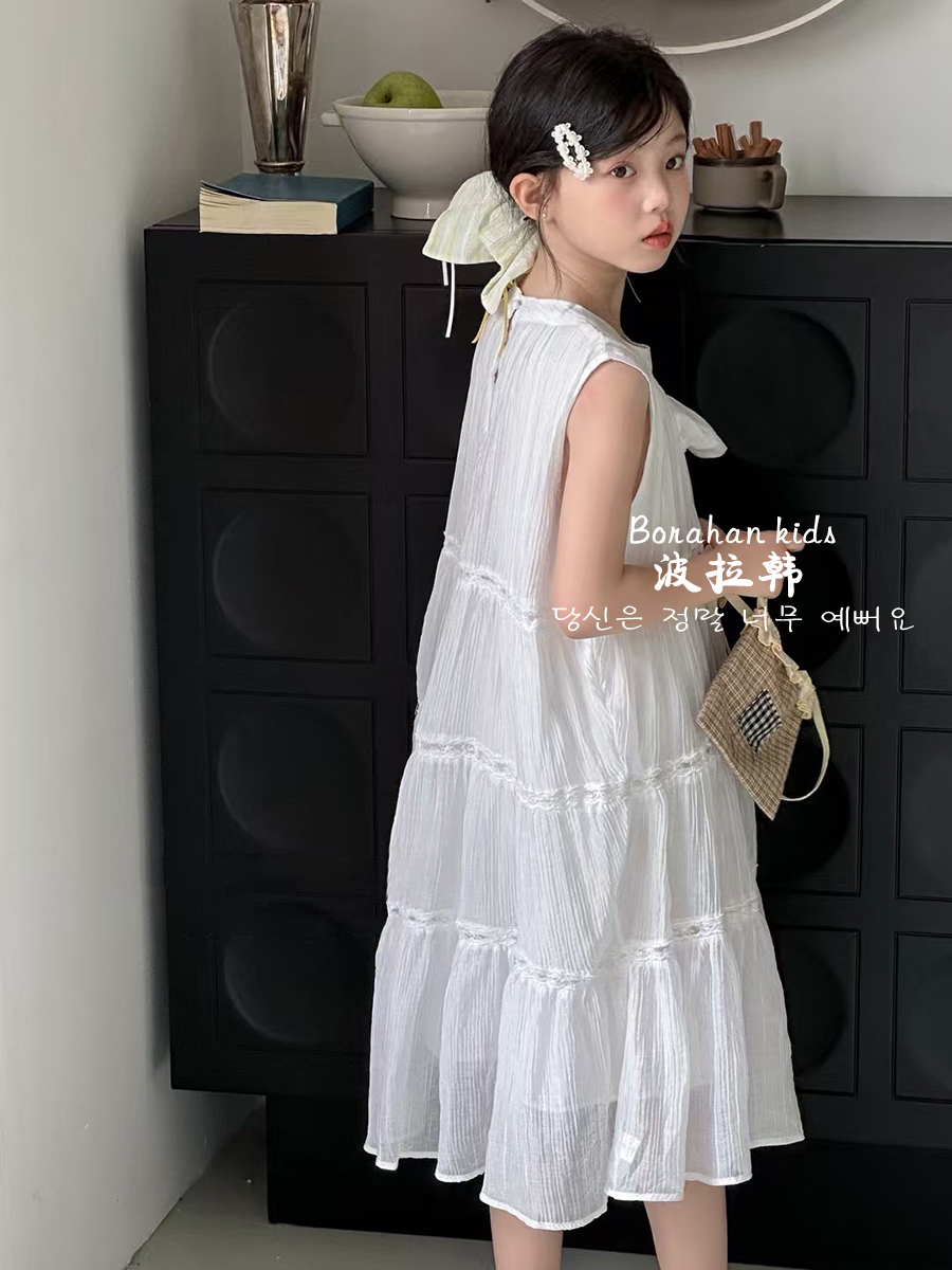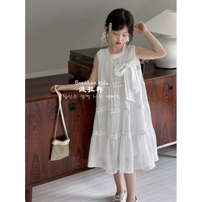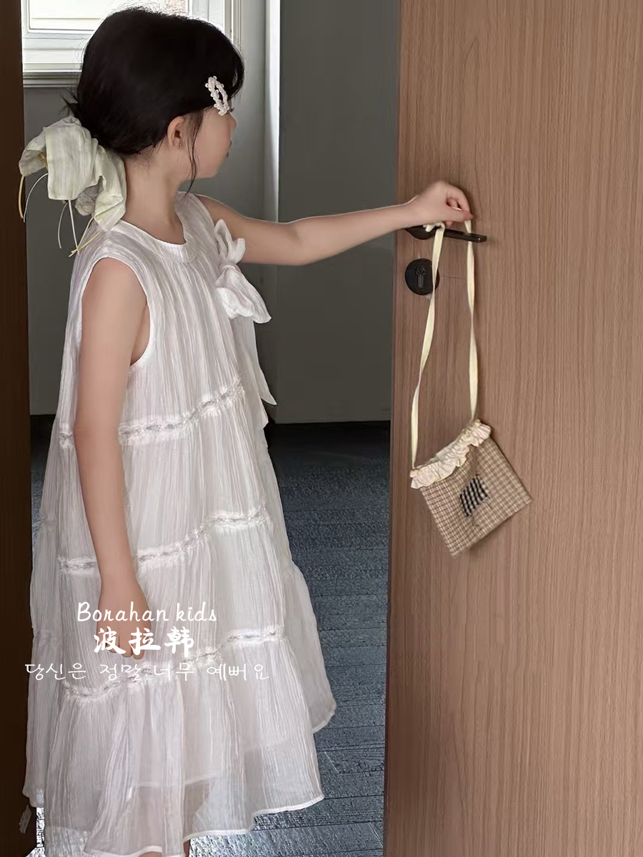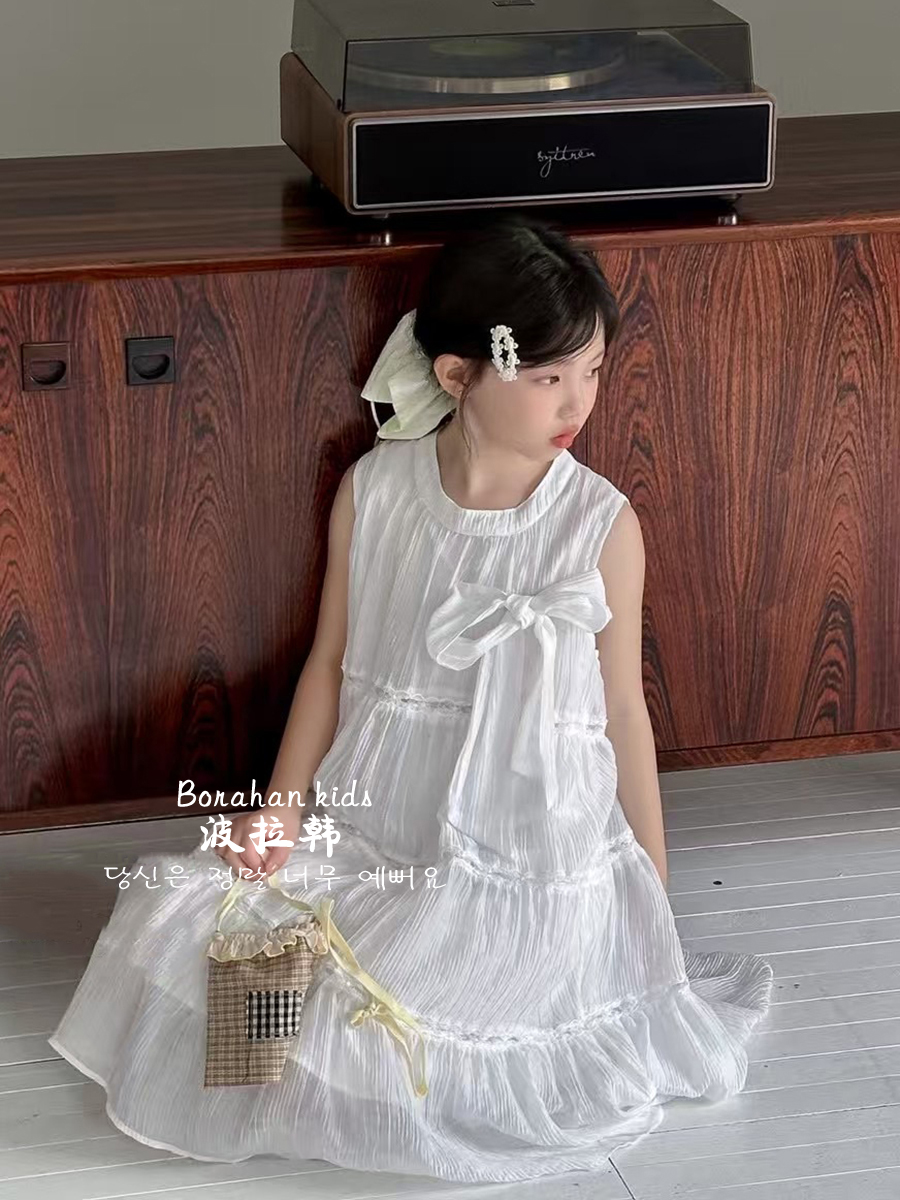 波拉韓女童連衣裙2025夏季背心裙兒童蝴蝶結公主裙小女孩甜美裙子