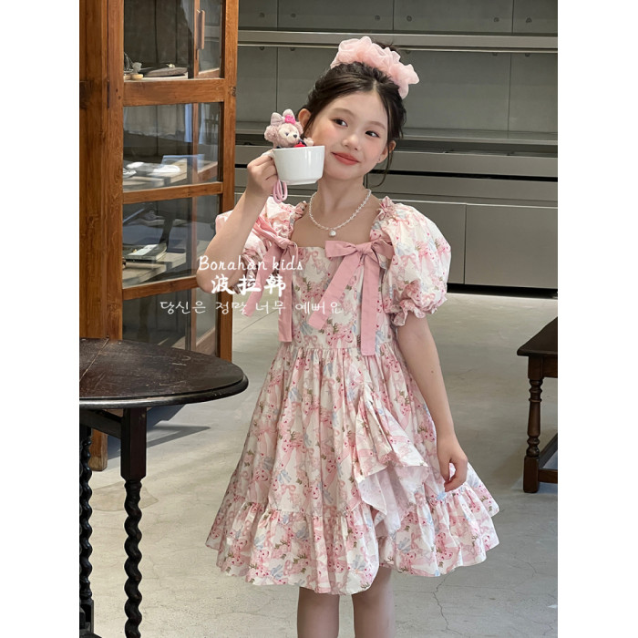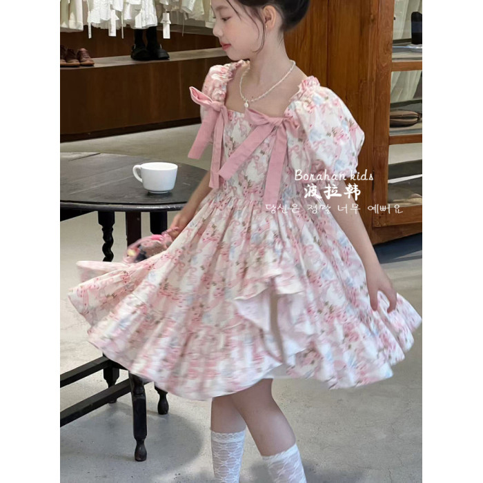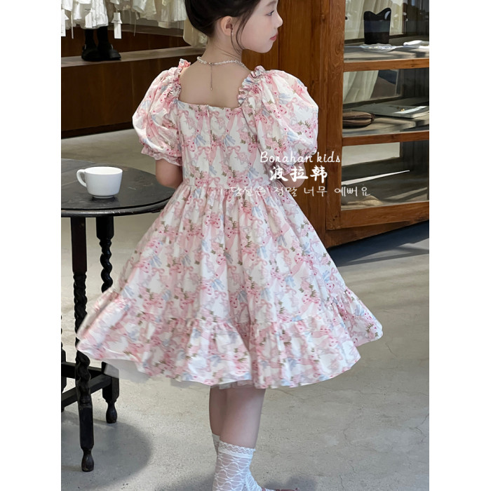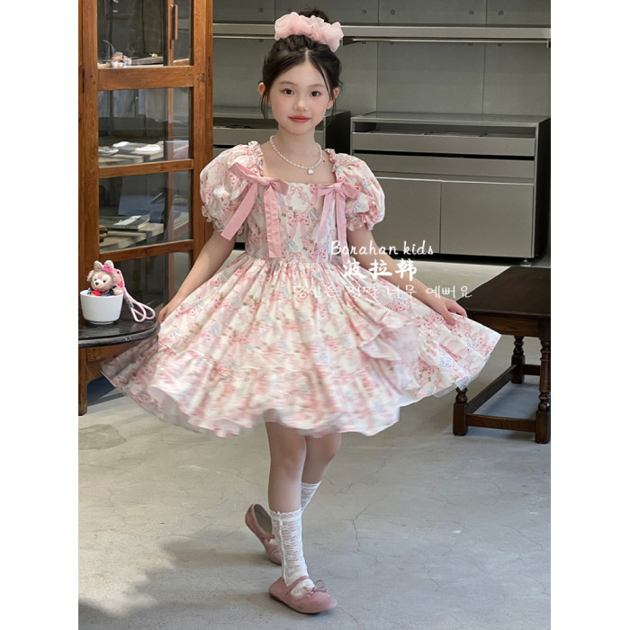 女童法式連衣裙夏裝裙子2025新款兒童泡泡袖公主裙女孩生日禮服裙