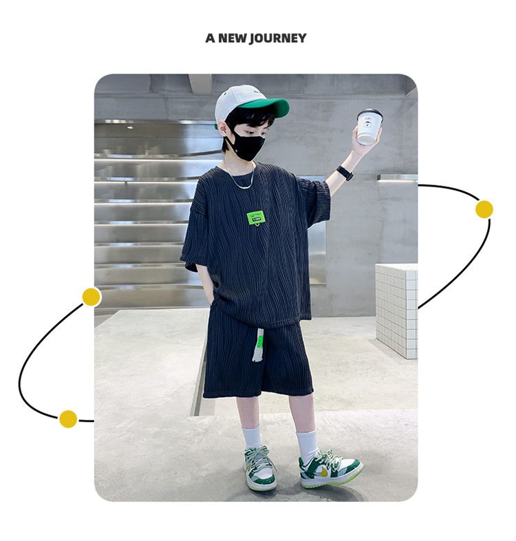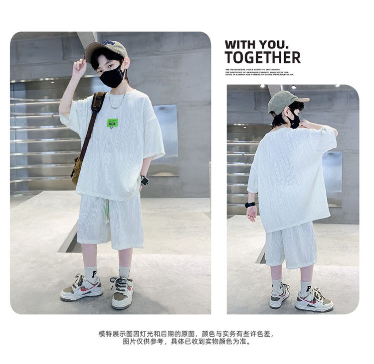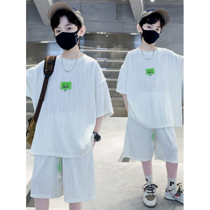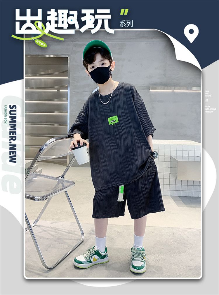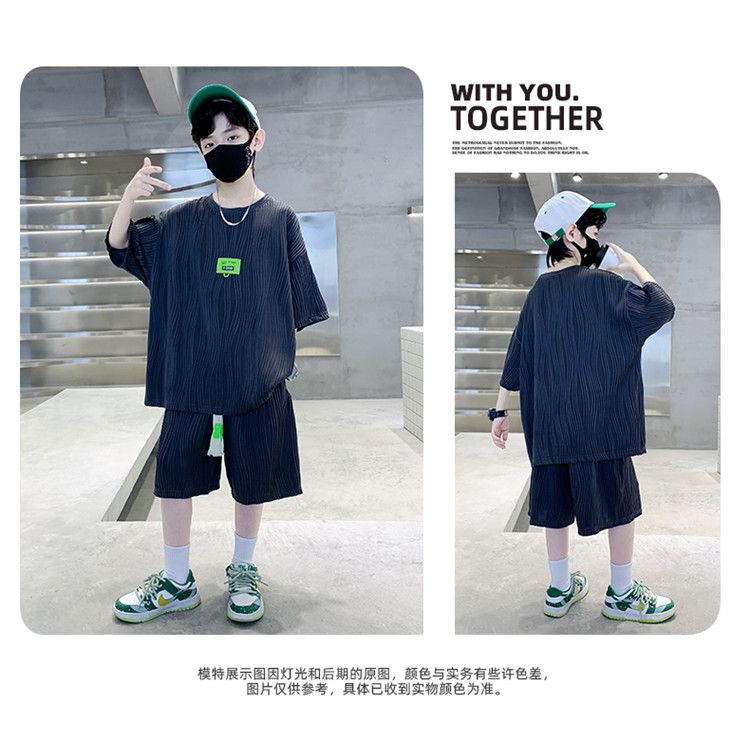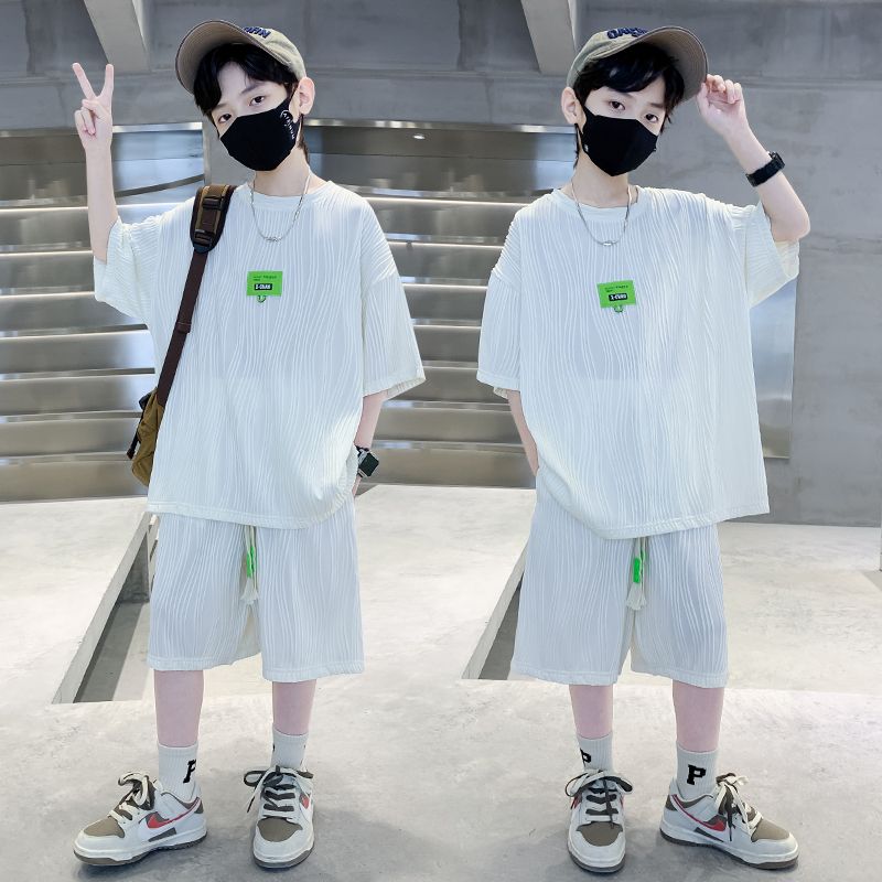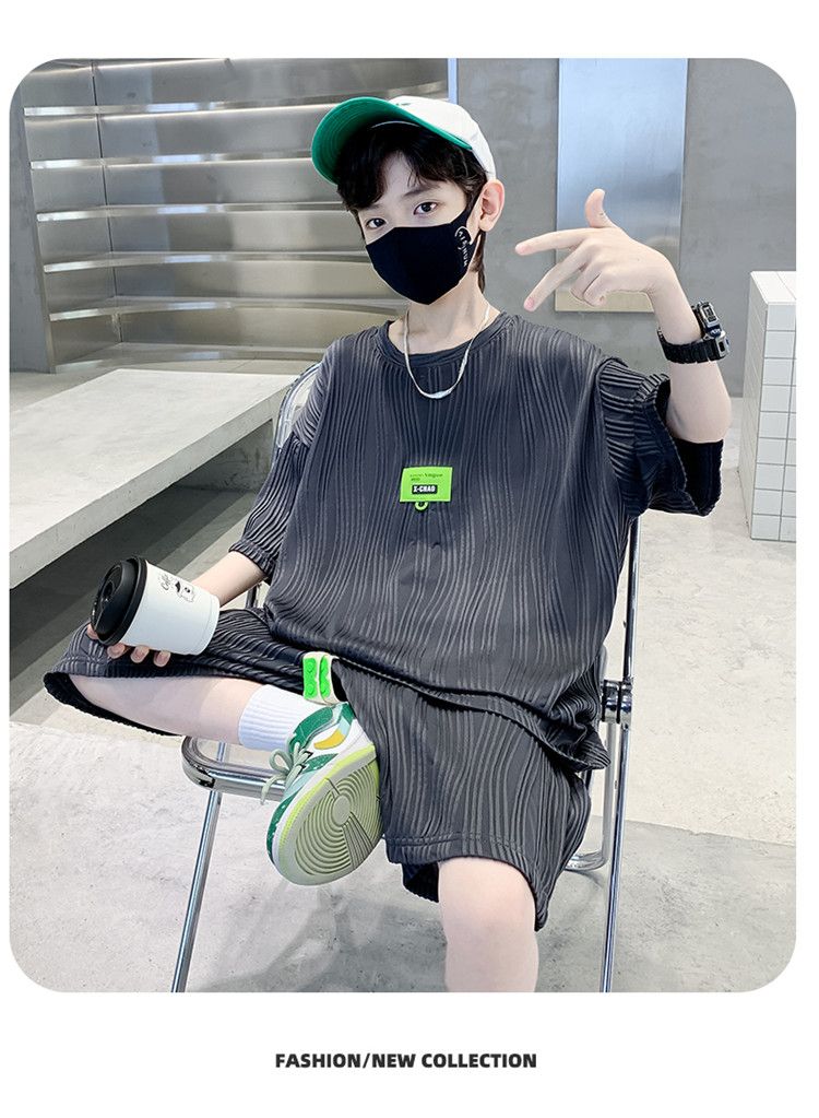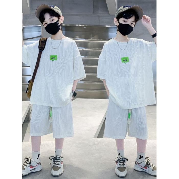 安哼安哼男童夏裝套裝冰絲透氣運動兩件套2025新款兒童裝夏季洋氣