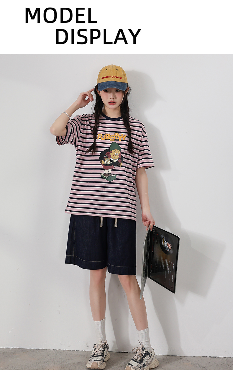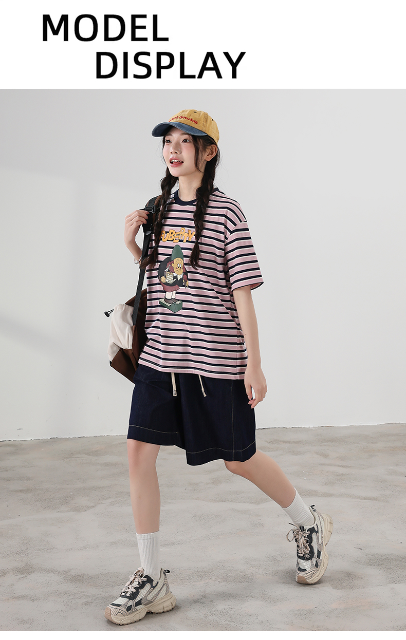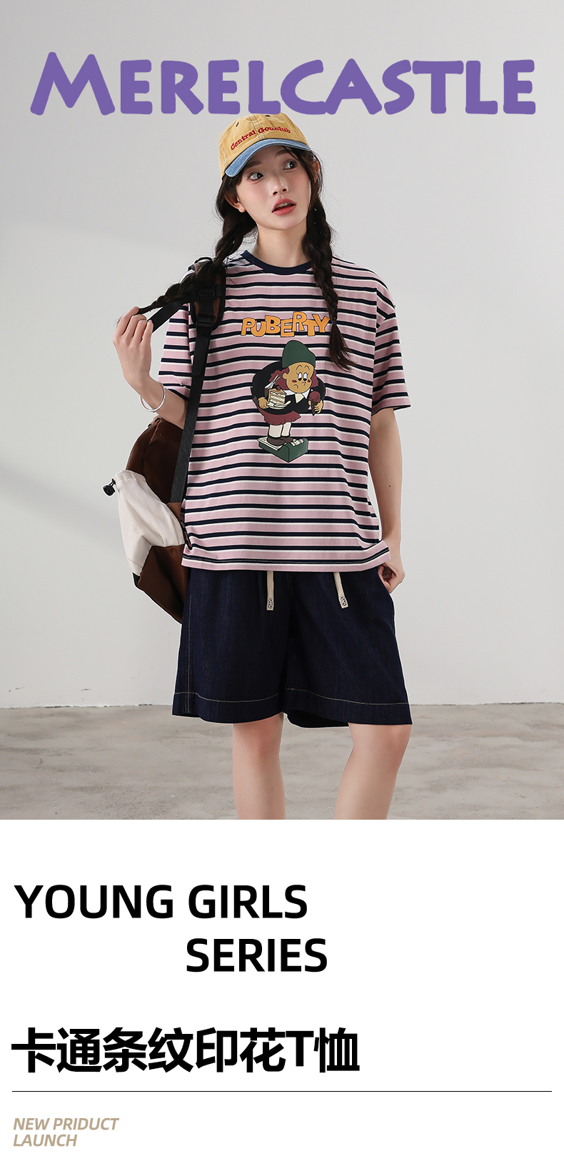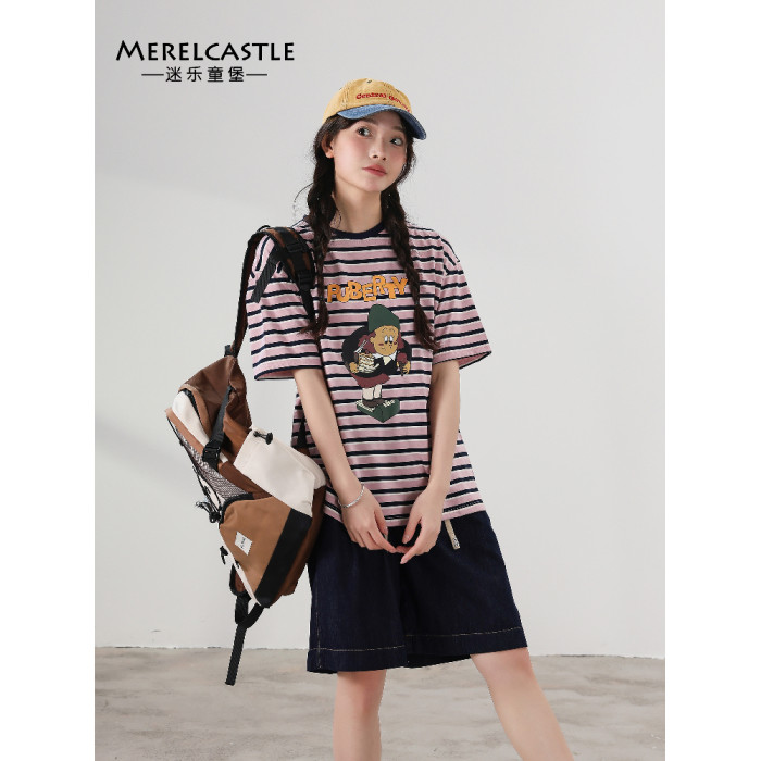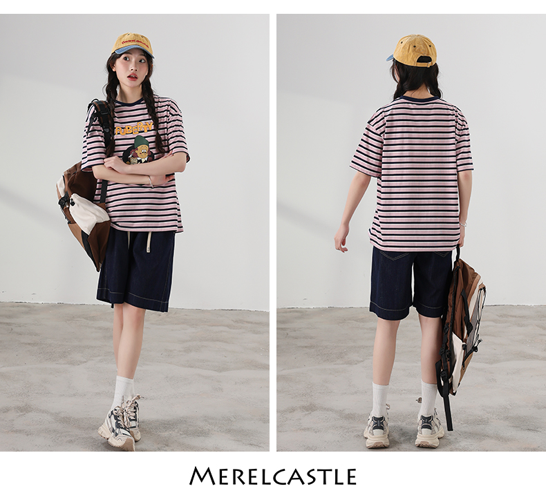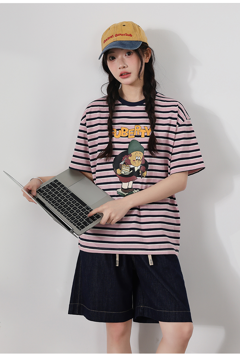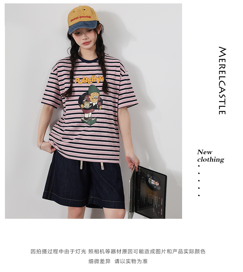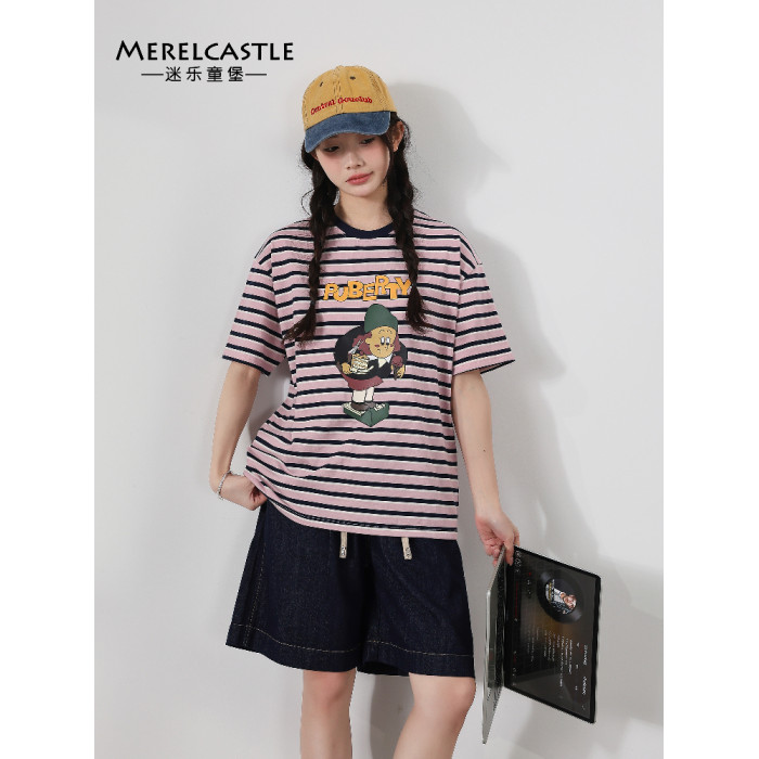 【CC家居控】女童短袖t恤女孩卡通條紋衣服女大童上衣C3216B