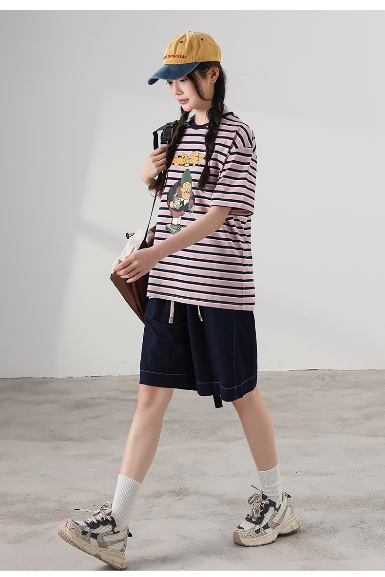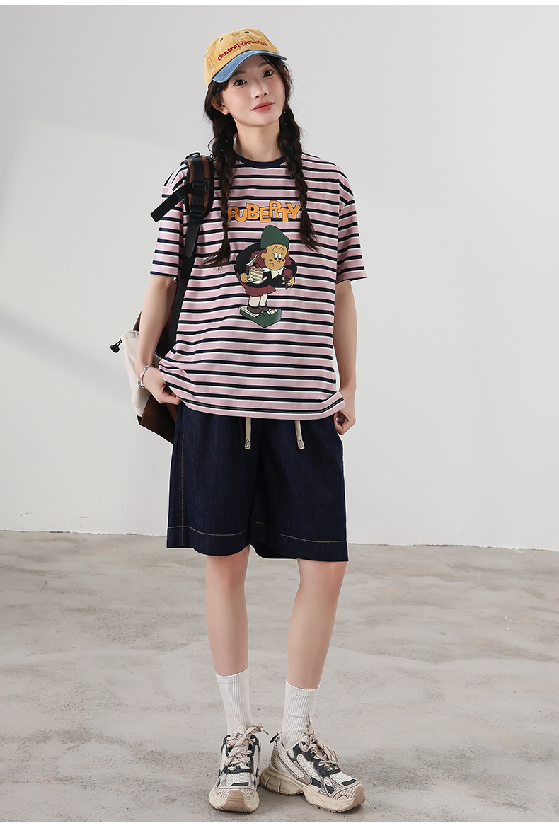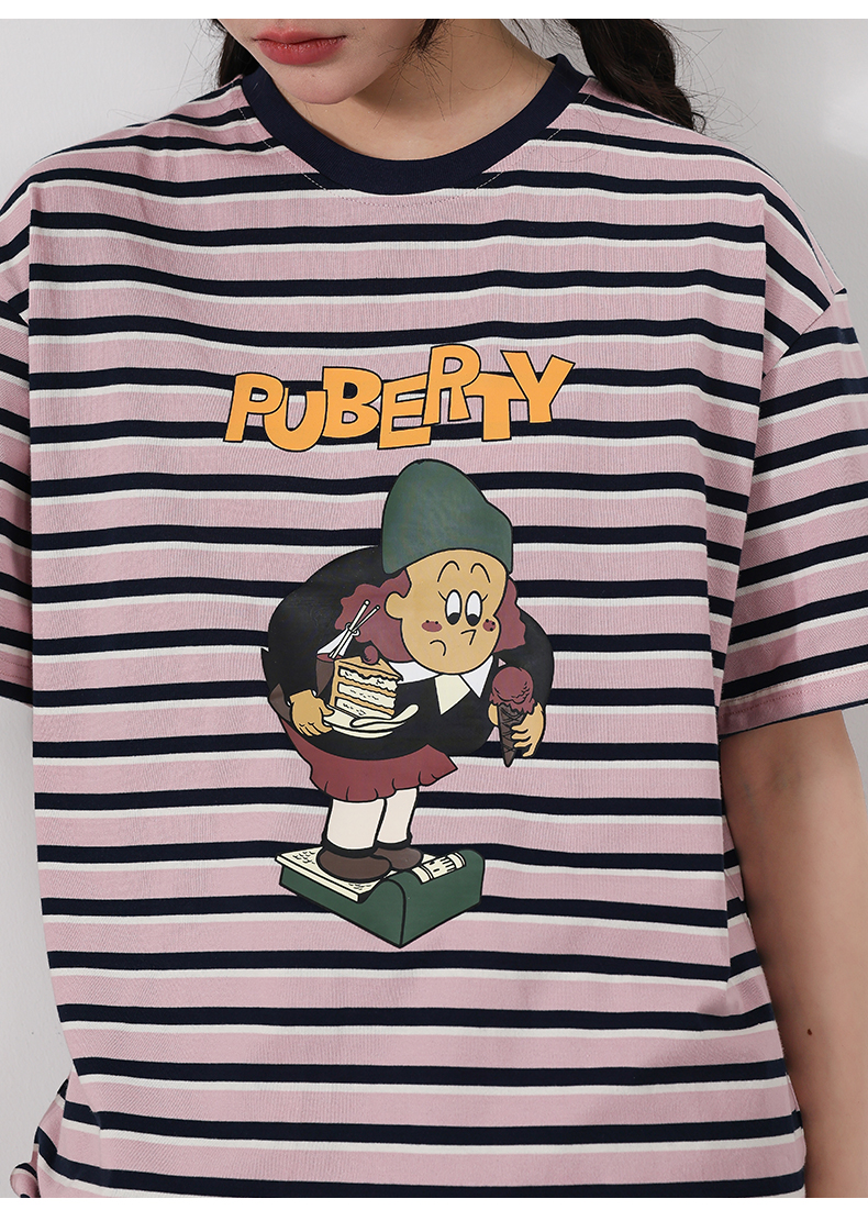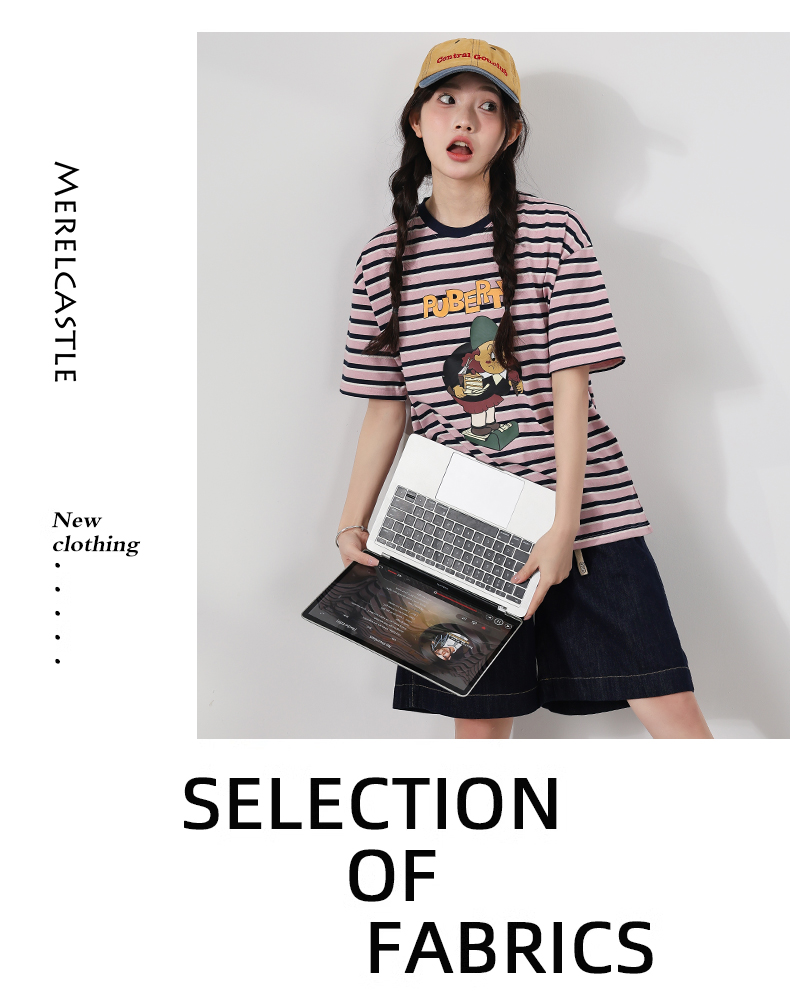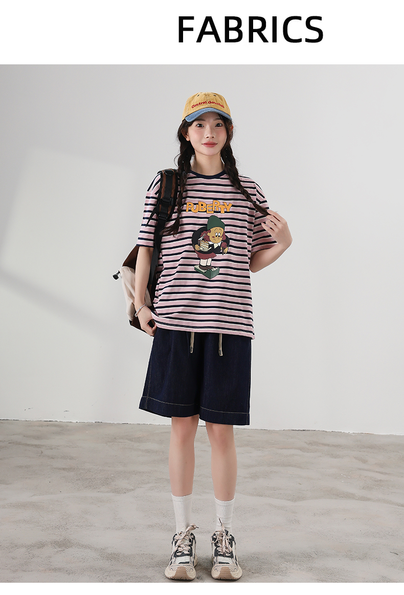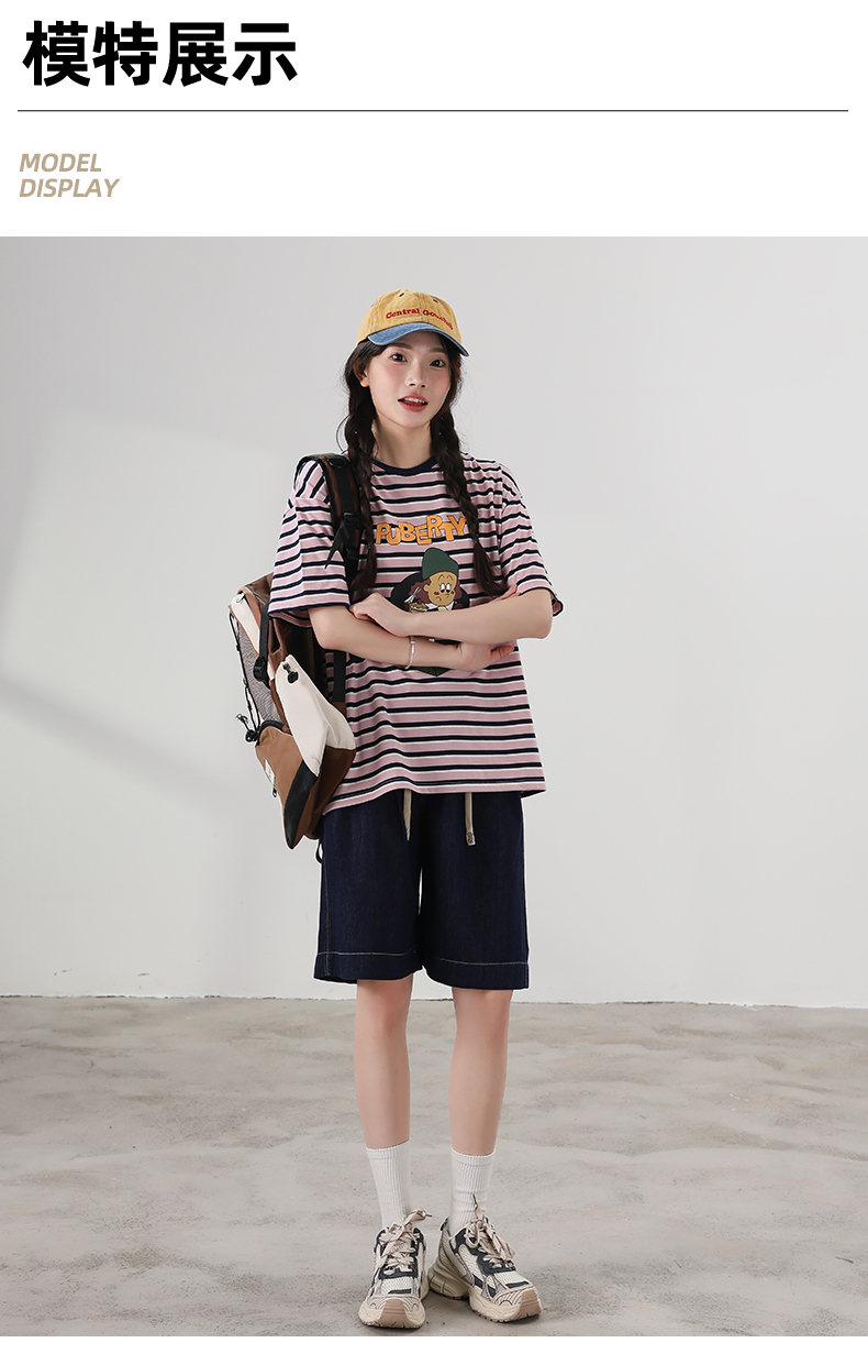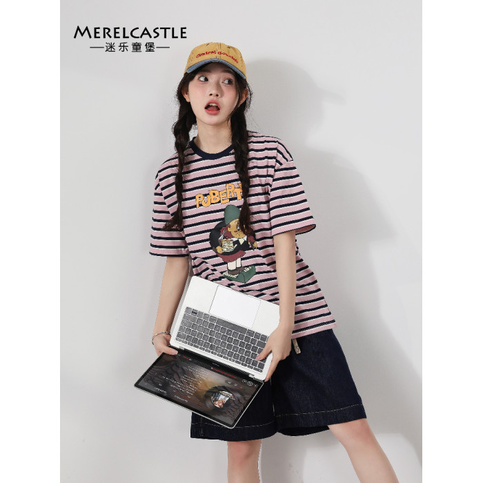 【CC家居控】女童短袖t恤女孩卡通條紋衣服女大童上衣C3216B