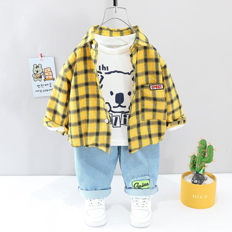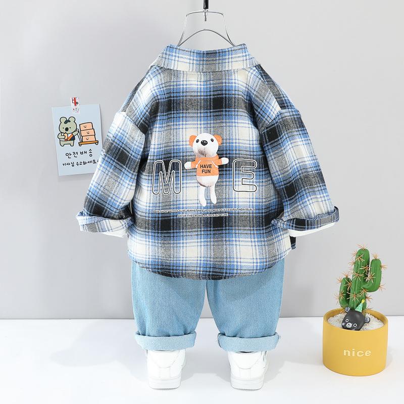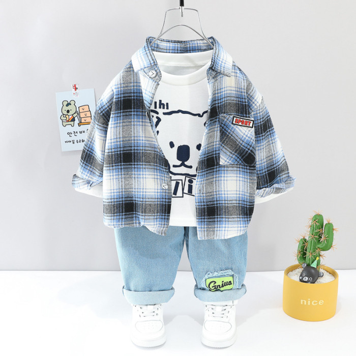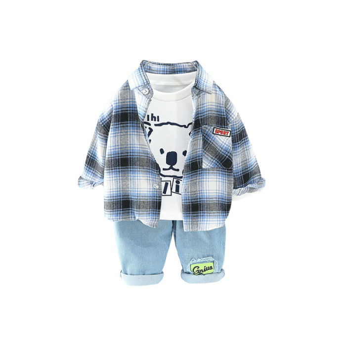 英國NEXT IGPP男童春季新款小白熊格子襯衣韓版休閒牛仔褲三件套