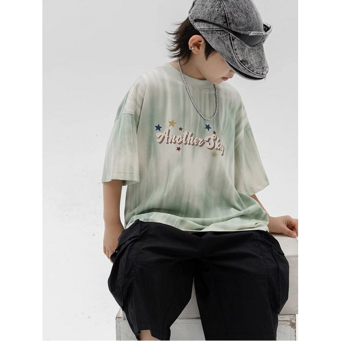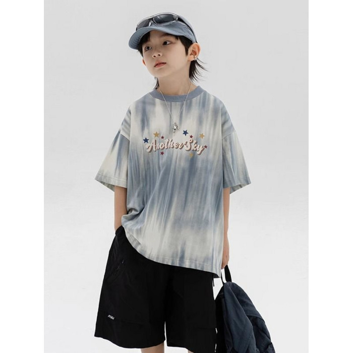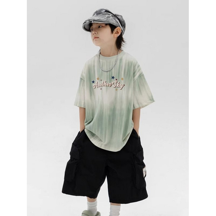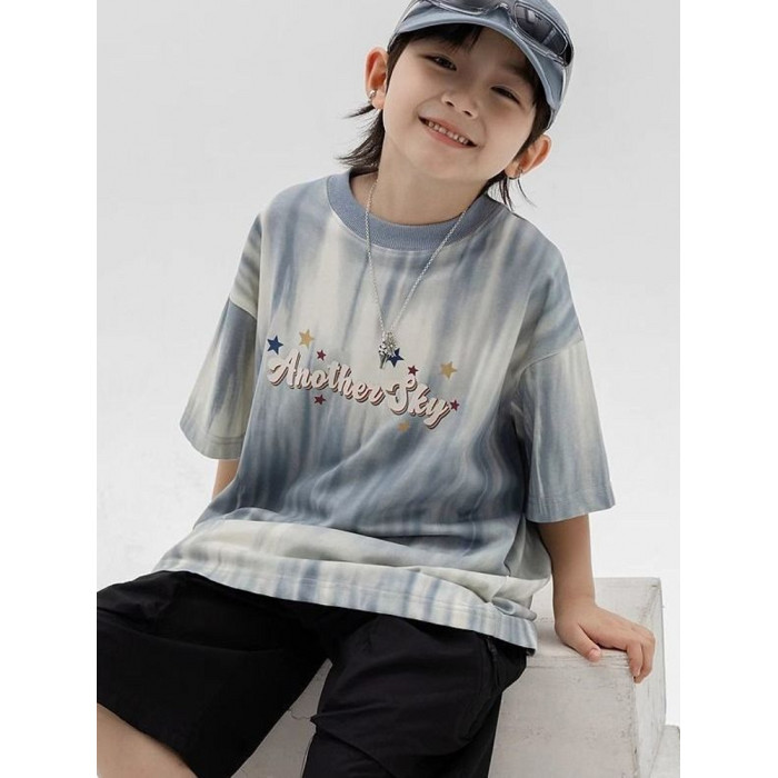 安哼安哼2025男童夏季漸變條紋短袖t恤新款兒童男孩夏裝涼感寬松