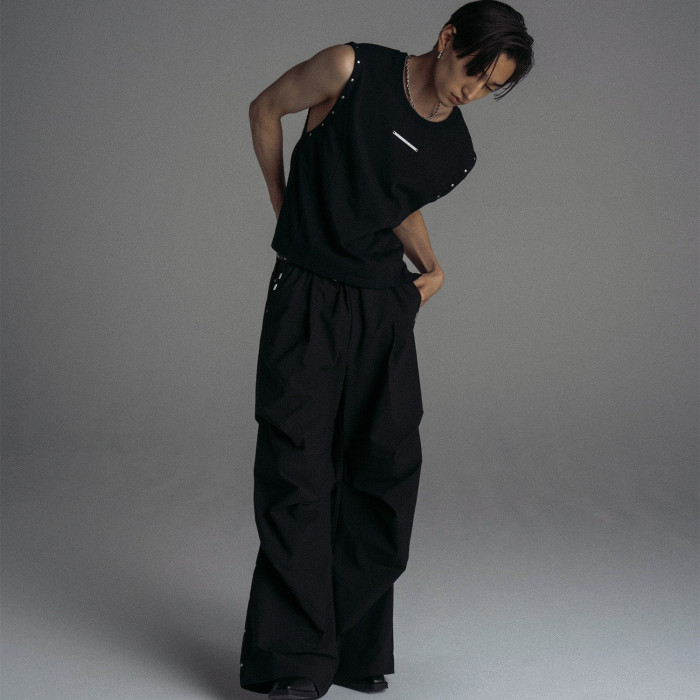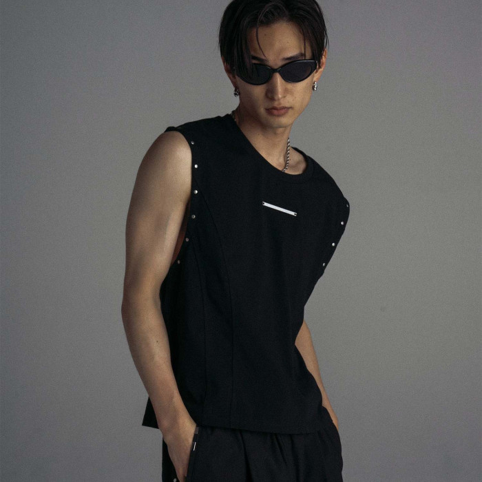 A109 JL圓領重工鉚釘無袖T恤金屬片時尚帥氣背心
