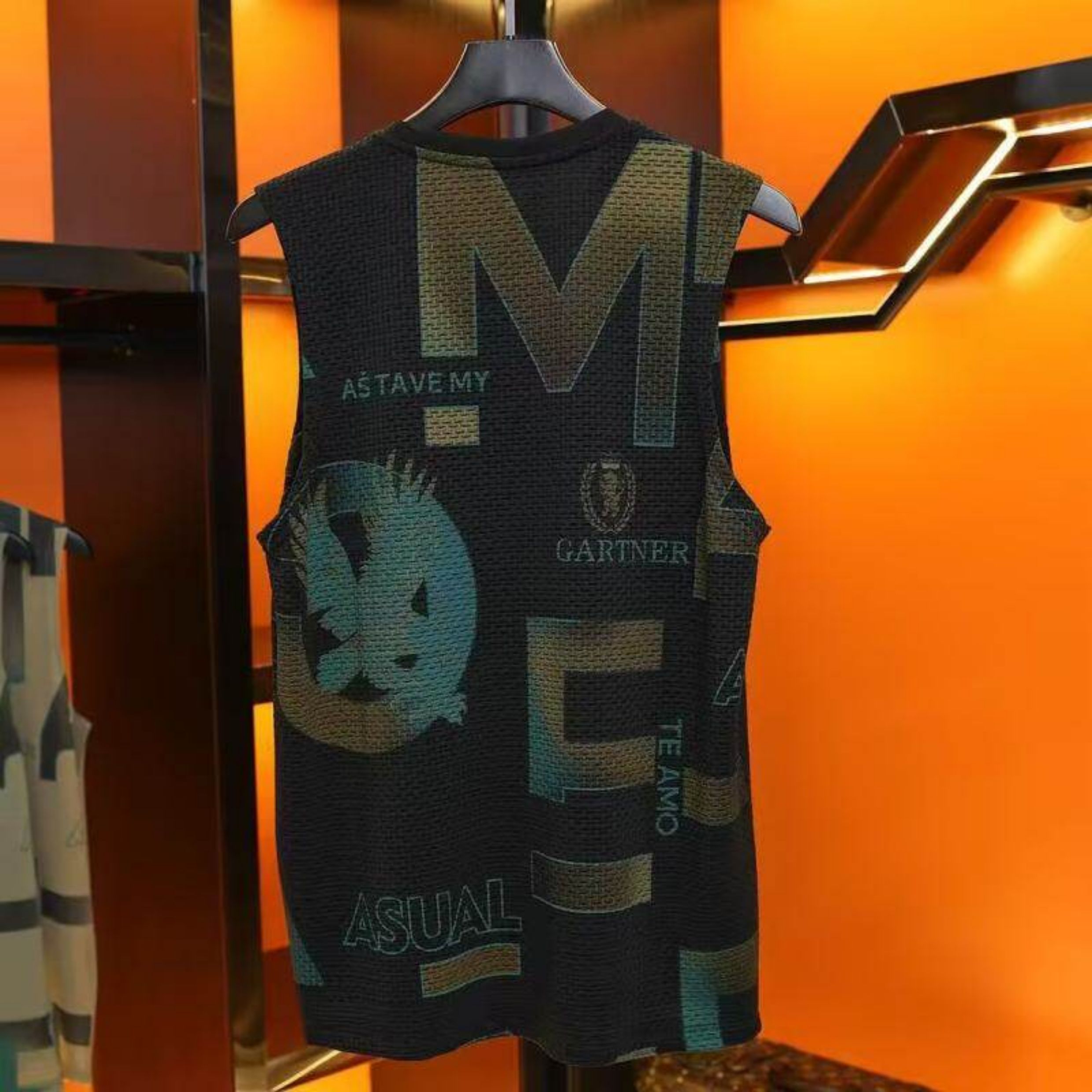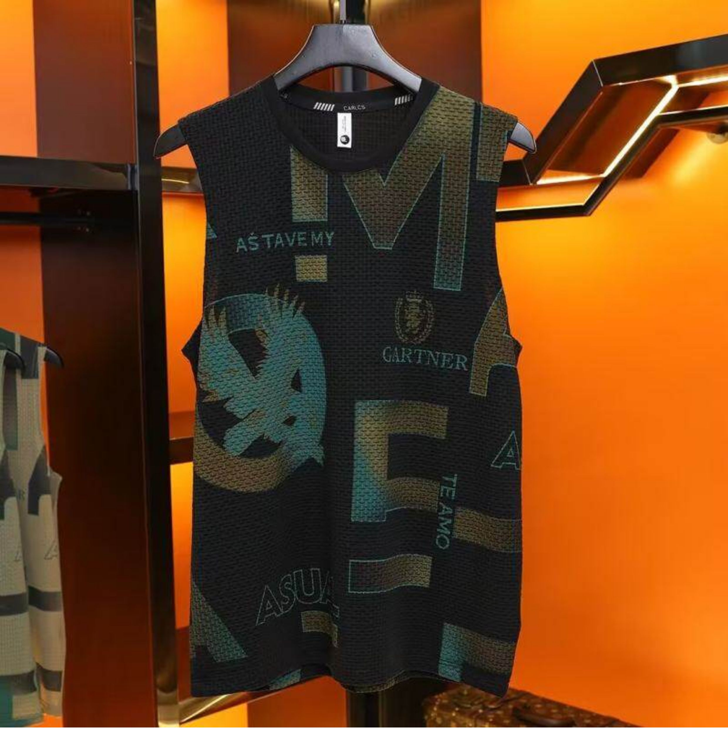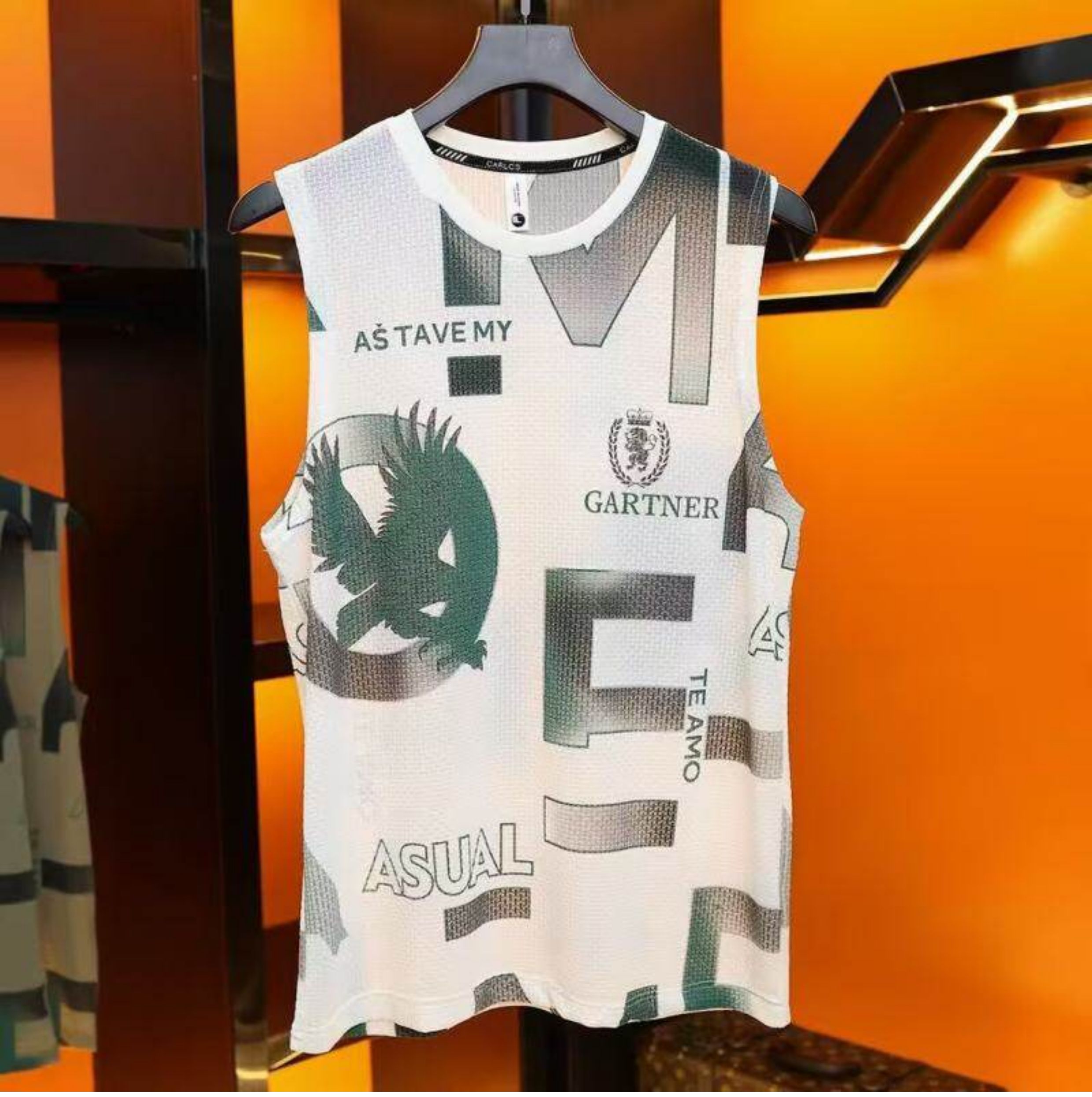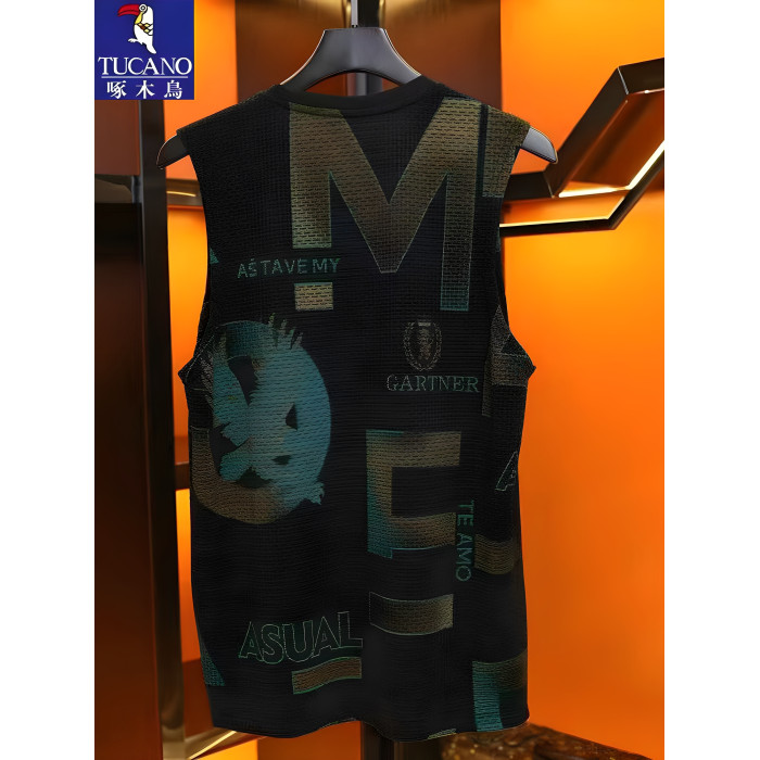 啄木鳥男夏新款冰絲背心印花圓領無袖上衣彈力運動坎肩大碼速乾