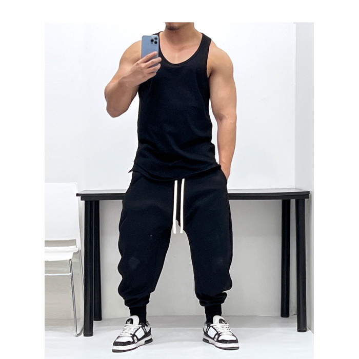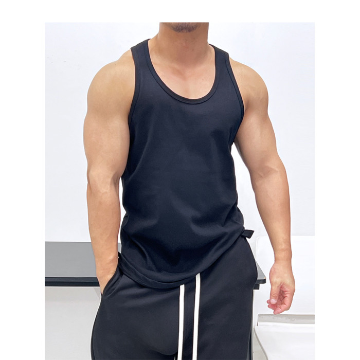 磨砂手感純棉!微廓形寬松肌肉男運動健身背心無袖T恤海灘旅遊跳舞