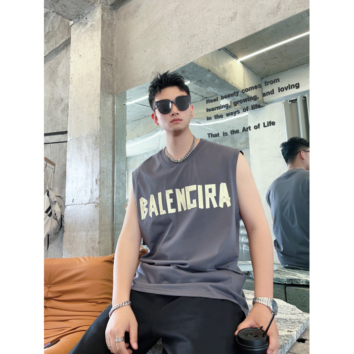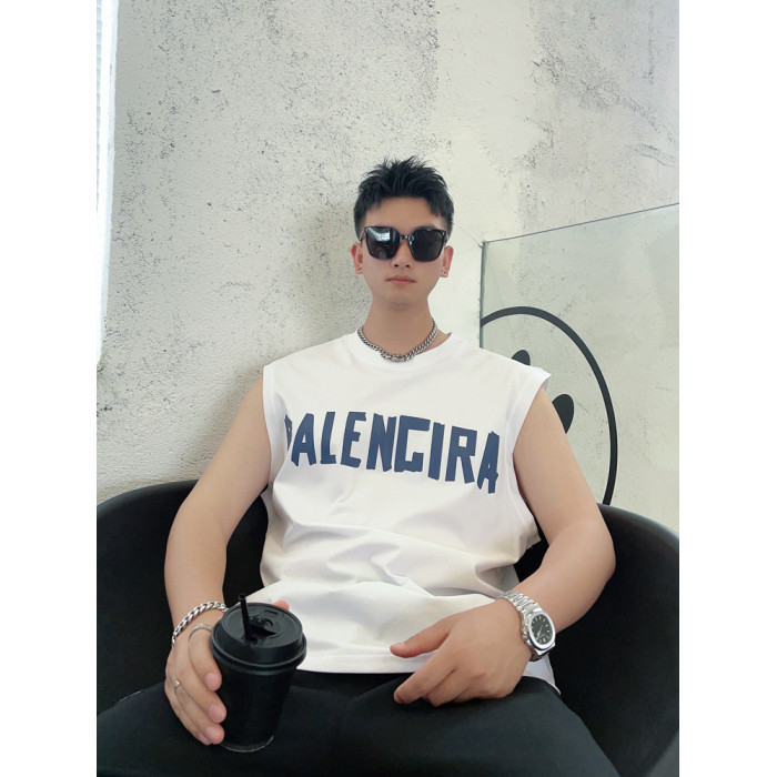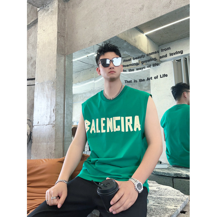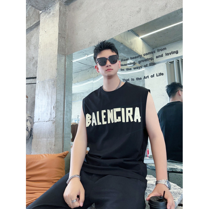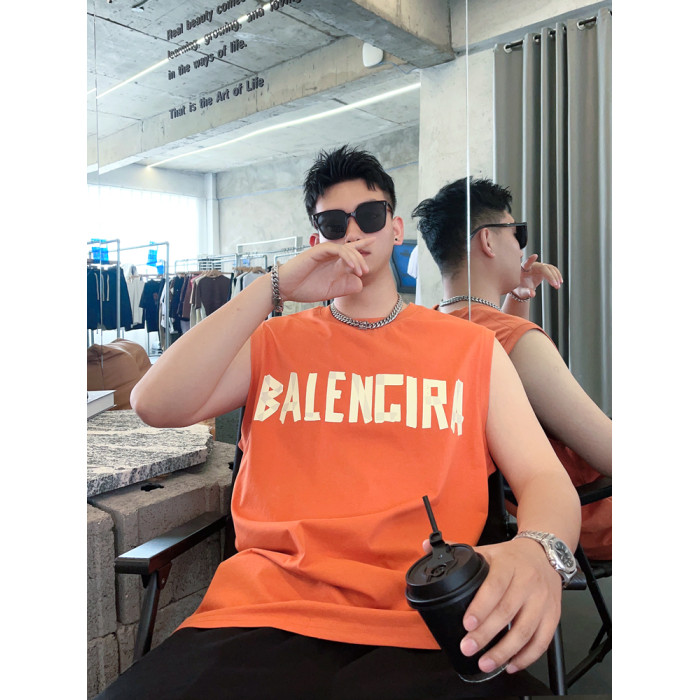 夏季砍袖男士韓版流行新款字母印花寬松運動背心青年圓領無袖T恤