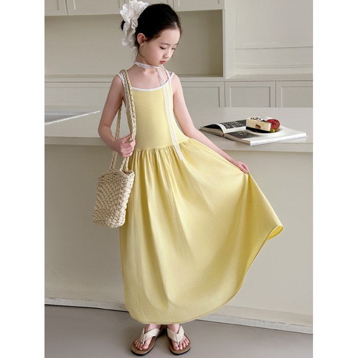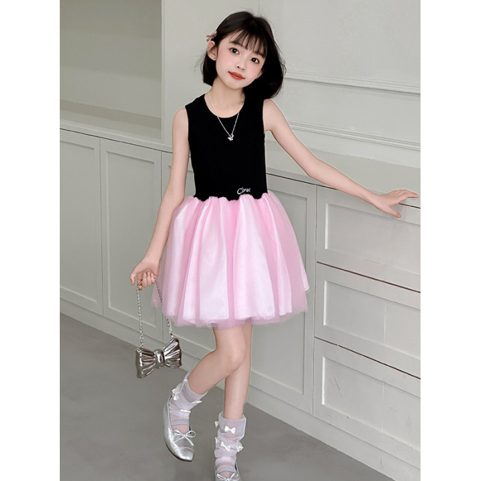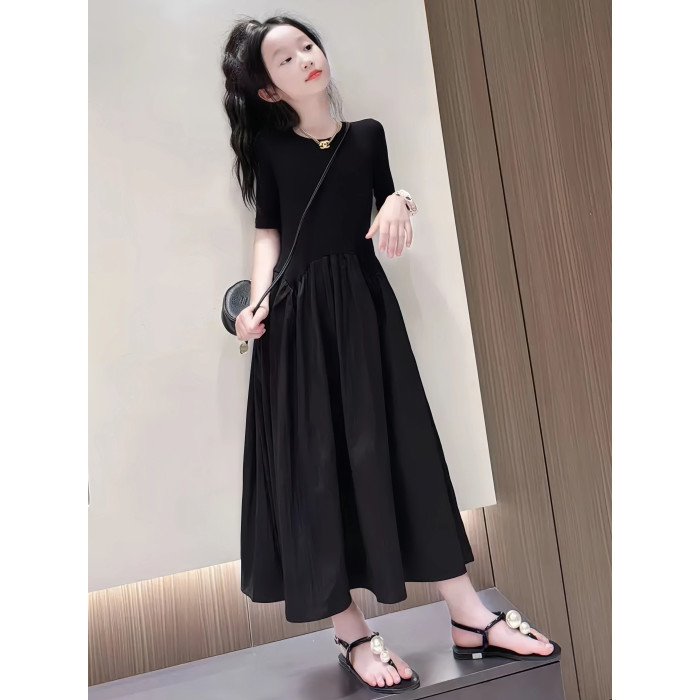 女童黑色連衣裙夏季女大童長裙背心裙赫本風小女孩夏裝裙子洋氣夏