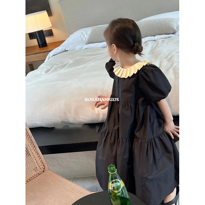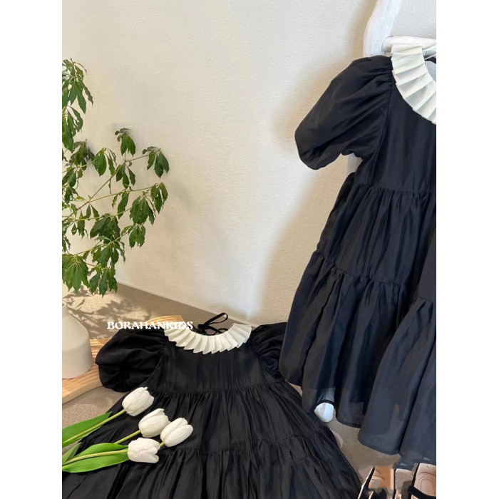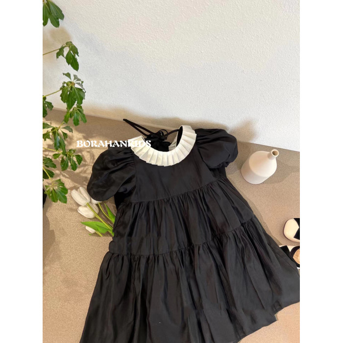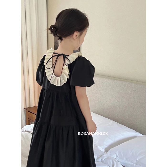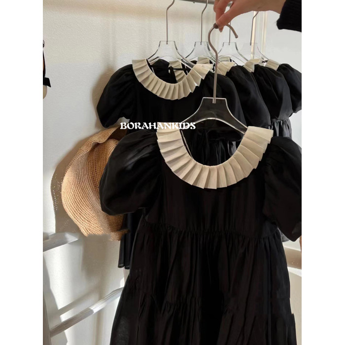 波拉韓童裝女童連衣裙2025夏裝兒童學院風裙子小女孩短袖襯衫裙潮