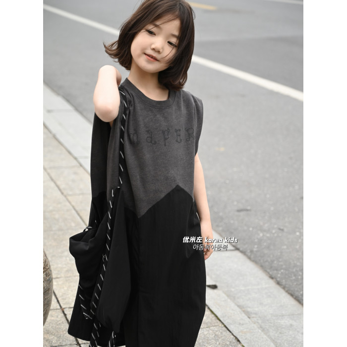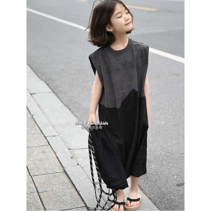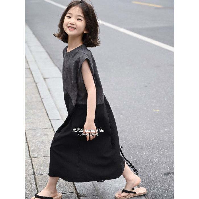 波拉bora韓國童裝夏裝2025新款女童夏季連衣裙拼接時髦兒童T恤裙