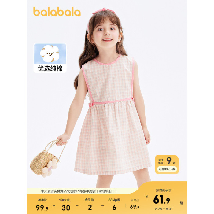 巴拉巴拉童裝女童裙子夏裝兒童連衣裙寶寶無袖格紋法式田園風甜美