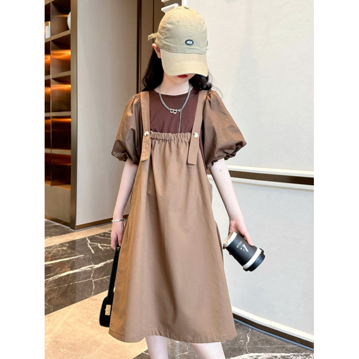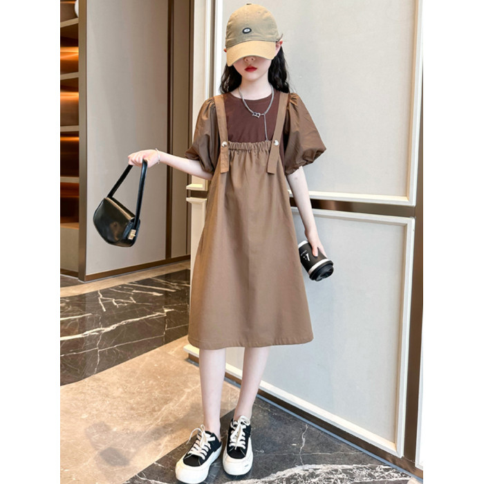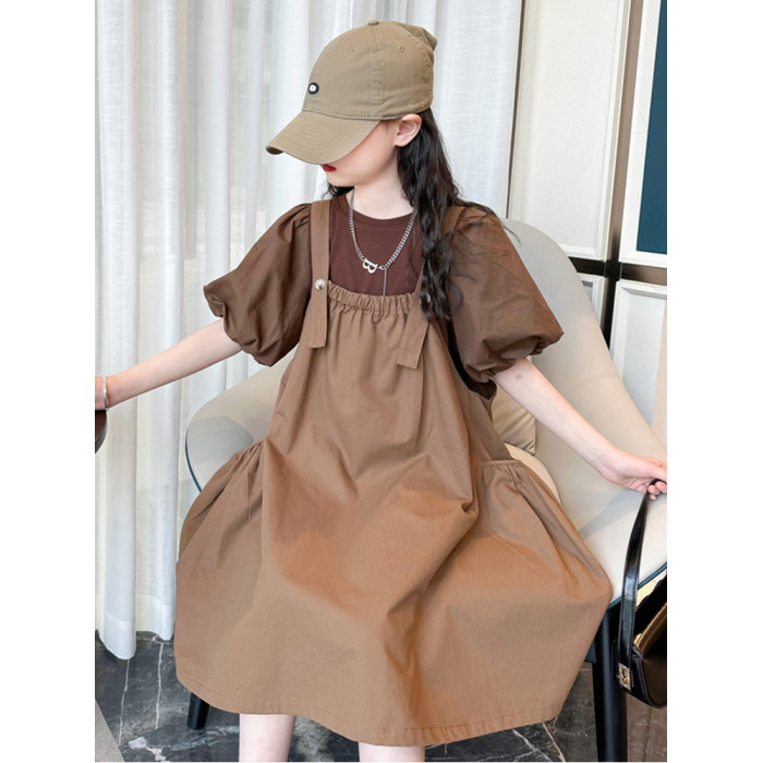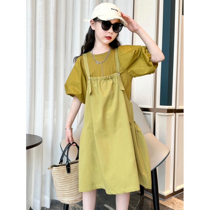 女童夏季連衣裙套裝大童夏裝泡泡袖裙子兒童夏天衣服小女孩背帶裙