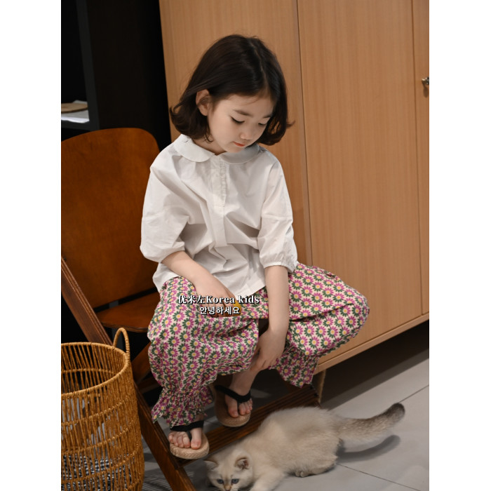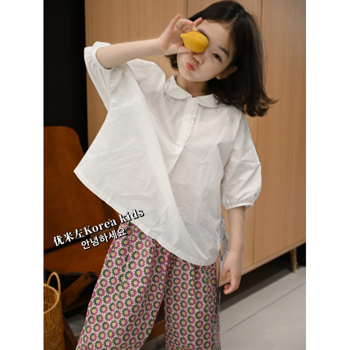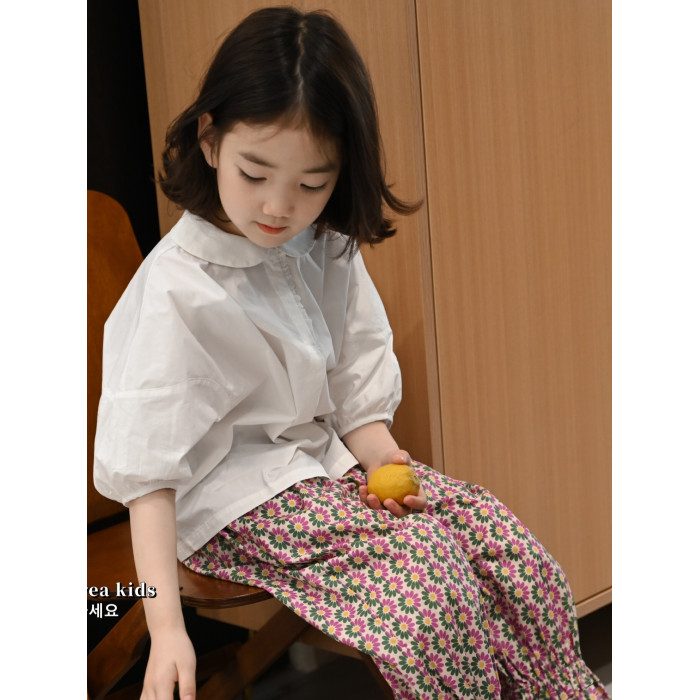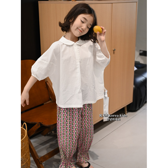 洋氣名媛風氣質女孩上衣夏季2025女童泡泡袖短袖襯衫夏裝娃娃衫