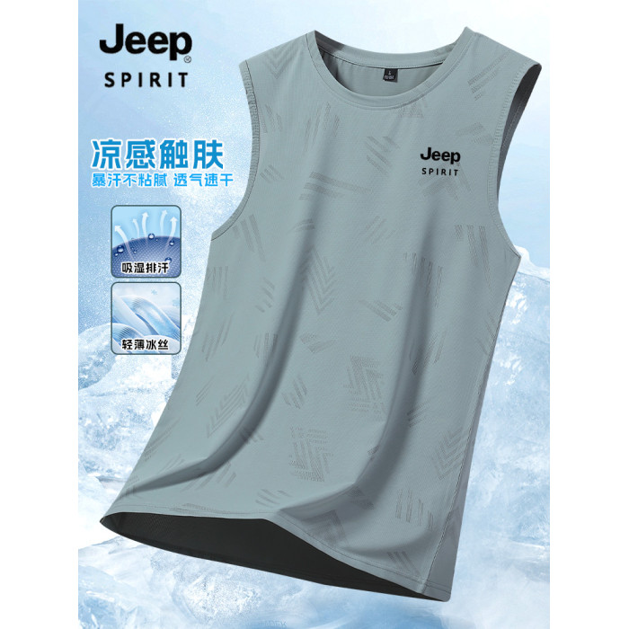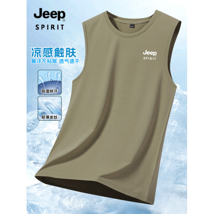 吉普男士運動背心夏季薄款冰絲速乾透氣寬松t恤休閒跑步健身無袖T