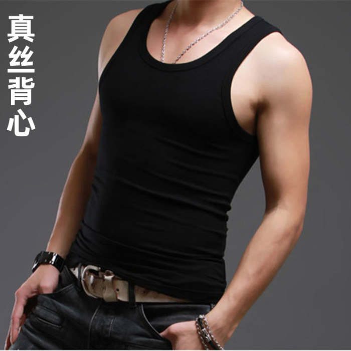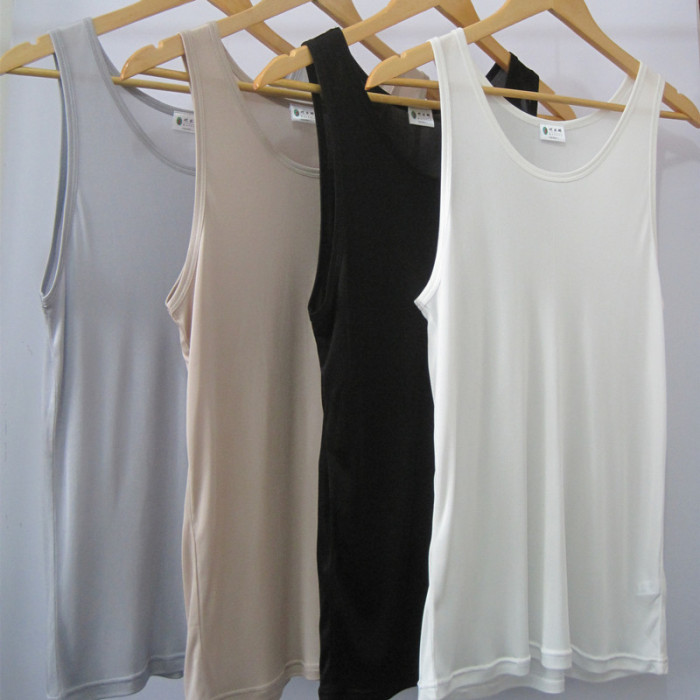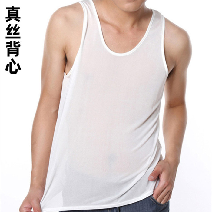 杭州真絲桑蠶絲針織薄款絲綢夏春秋冬季男士背心透氣打底寬松無袖