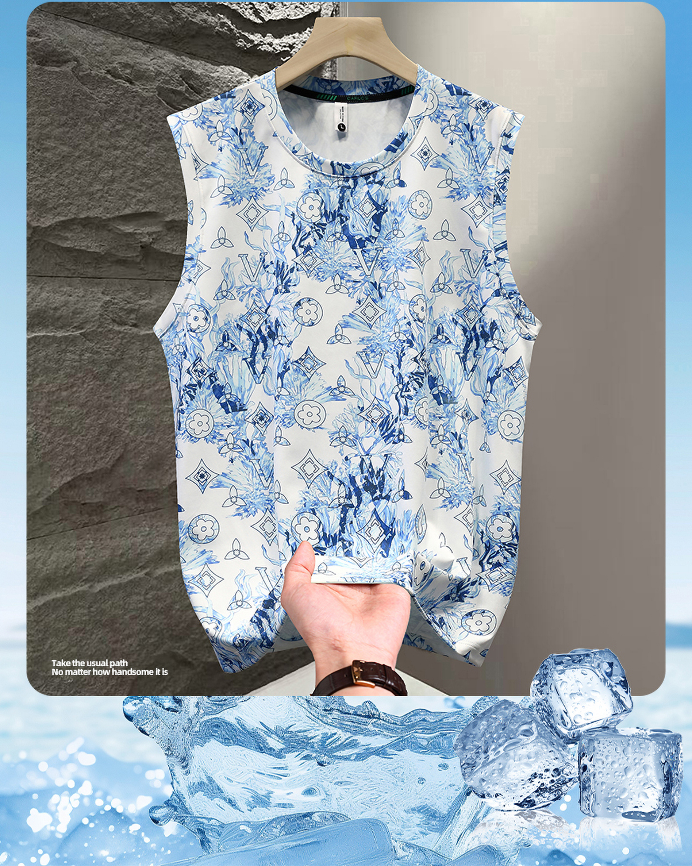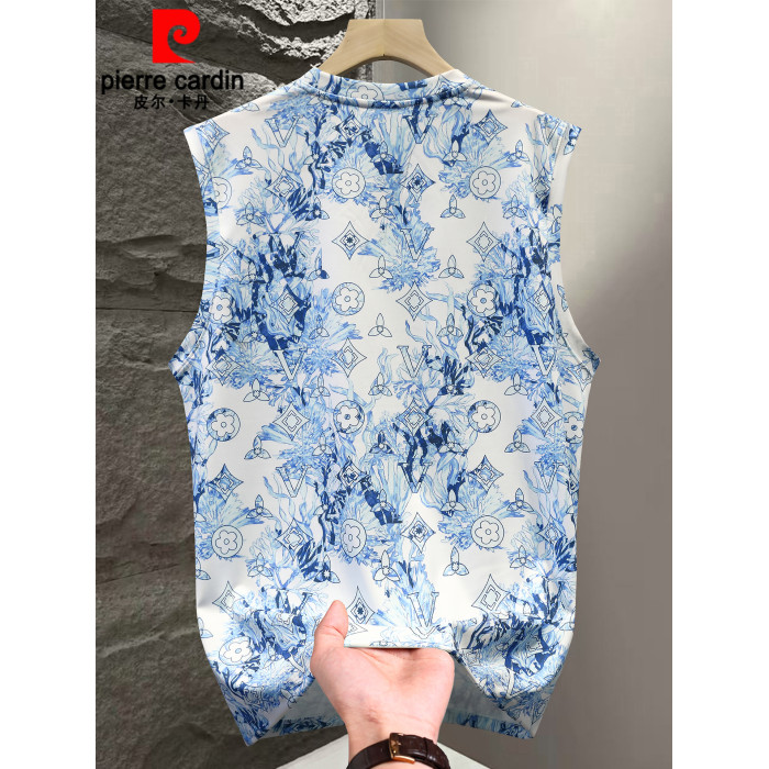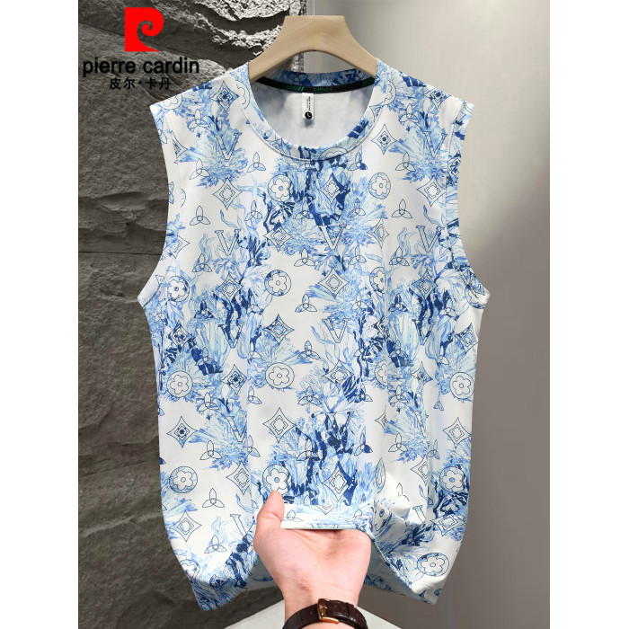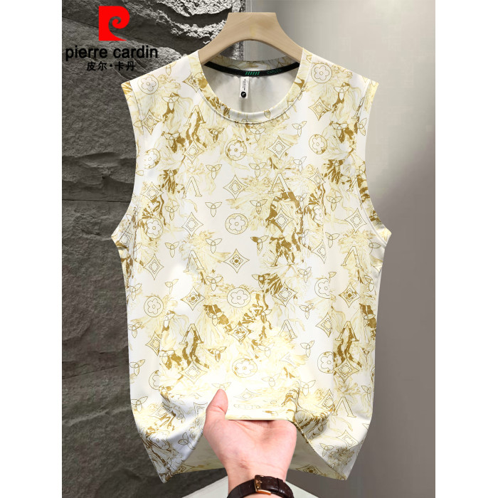 皮爾卡丹夏季男士休閒冰絲背心打底衫無袖T恤男款潮牌坎肩上衣薄